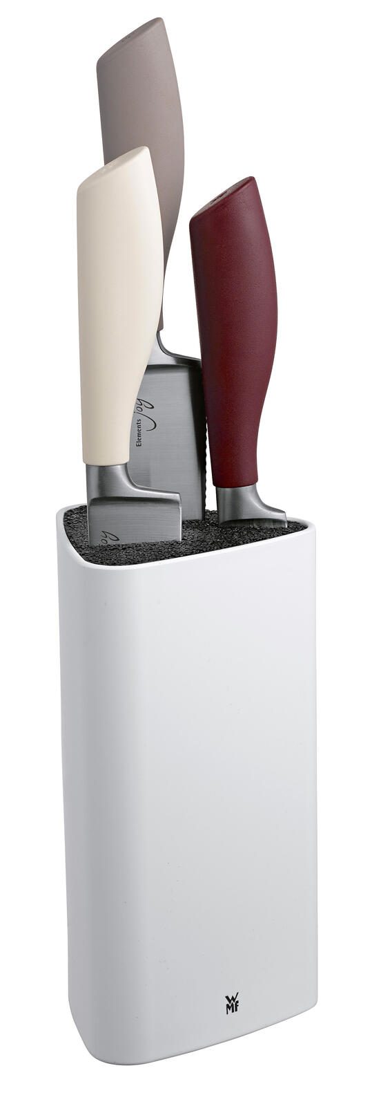 Der WMF Messerblock Elements in Weiß ist ein Must-Have für deine Küche. Dieser elegante Messerblock aus der Elements Serie von WMF vereint hochwertigen Spezialklingenstahl mit robustem Kunststoff in einem ansprechenden Design. Die speziell gefertigten Klingen garantieren präzise und mühelose Schnittleistung, während der Kunststoffblock für eine sichere und ordentliche Aufbewahrung sorgt.