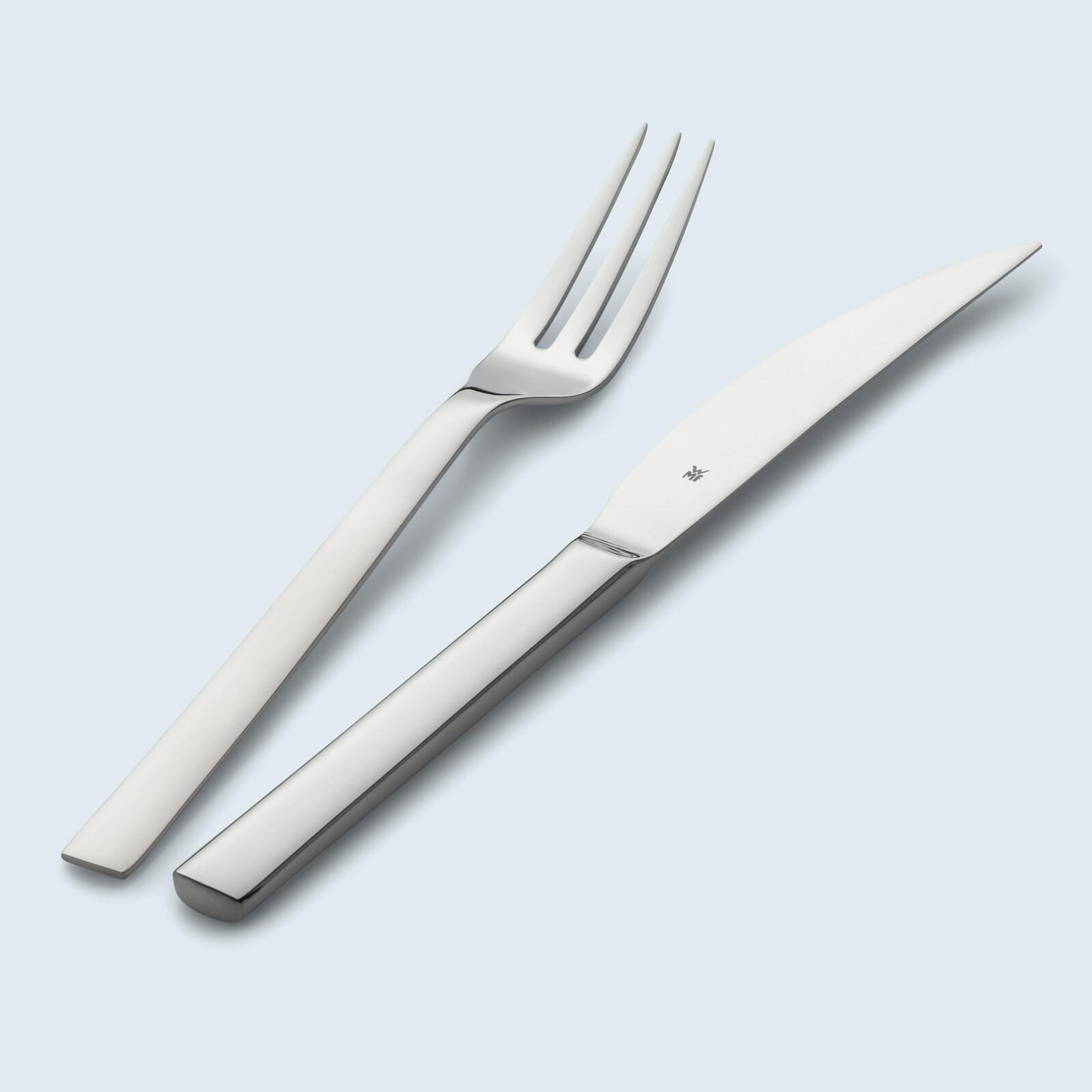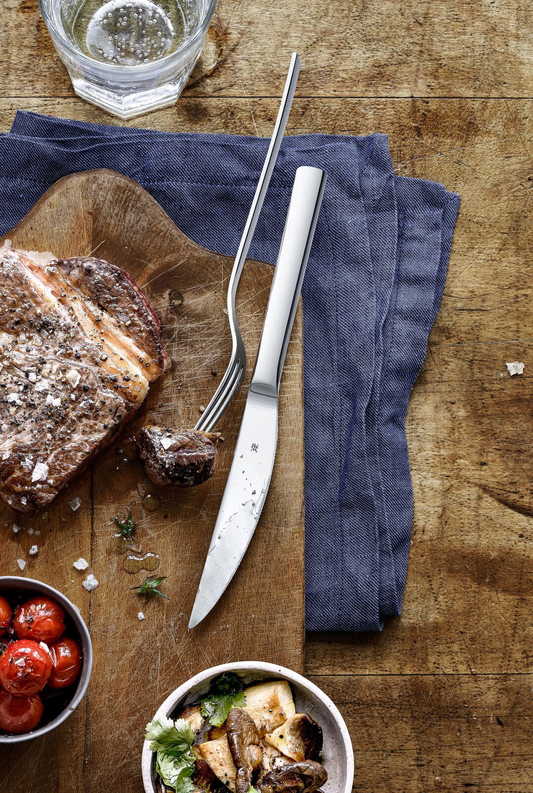 Das WMF Steakbesteck Nuova silber vereint Eleganz und Funktionalität in einem stilvollen Set. Hergestellt aus hochwertigem Cromargan® Edelstahl 18/10, bietet dieses Besteck nicht nur eine ansprechende Optik, sondern auch eine außergewöhnliche Langlebigkeit. Die polierte Oberfläche verleiht dem Besteck einen edlen Glanz, der auf jedem Tisch zum Blickfang wird. Die ergonomischen Edelstahlgriffe sorgen für einen sicheren und komfortablen Halt, sodass du beim Schneiden und Genießen deiner Steakgerichte stets die volle Kontrolle hast. Das Besteck ist spülmaschinenfest, was die Reinigung nach einem genussvollen Essen erheblich erleichtert. So kannst du dich ganz auf den Genuss konzentrieren, ohne dir Gedanken über den Aufwand beim Abwasch machen zu müssen. Das Set besteht aus zwei Teilen, die perfekt aufeinander abgestimmt sind und sich ideal für ein romantisches Dinner oder ein geselliges Grillfest eignen. Die silberne Farbe fügt sich harmonisch in jede Tischdekoration ein und sorgt für ein stilvolles Ambiente. Mit dem WMF Steakbesteck Nuova erhältst du nicht nur ein praktisches Küchenutensil, sondern auch ein hochwertiges Designobjekt, das deine Esskultur bereichert. Genieße die Kombination aus Funktionalität und Ästhetik, die dieses Steakbesteck zu einem unverzichtbaren Begleiter bei jedem Steakessen macht.Technische Daten