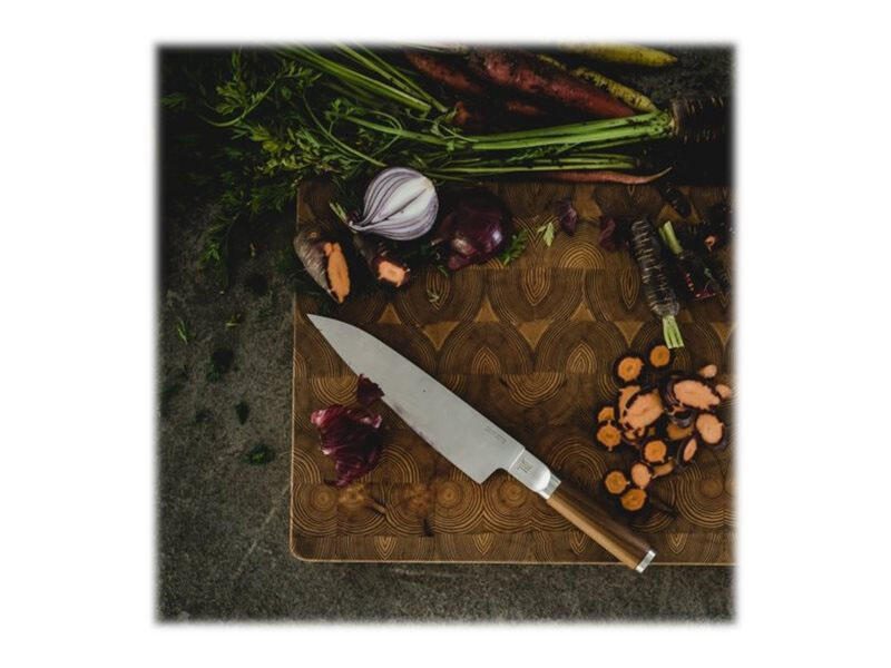 Das FISKARS® Kochmesser ist ein unverzichtbares Werkzeug für jede Küche. Mit einer Gesamtlänge von 31,6 cm bietet es eine perfekte Balance zwischen Handhabung und Funktionalität. Der hochwertige Stahl sorgt nicht nur für eine beeindruckende Schärfe, sondern auch für Langlebigkeit und Rostfreiheit, was dir eine zuverlässige Nutzung über viele Jahre hinweg garantiert. Der elegante Holzgriff in braun fügt sich harmonisch in das silberne Klingen-Design ein und bietet dir einen komfortablen Halt. Dies ermöglicht präzises Schneiden, Hacken und Würfeln von Zutaten, egal ob Gemüse, Fleisch oder Fisch. Die Kombination aus modernem Design und traditioneller Handwerkskunst macht dieses Kochmesser zu einem echten Blickfang in deiner Küche. Die vielseitigen Einsatzmöglichkeiten des FISKARS® Kochmessers machen es ideal für Hobbyköche und Profis gleichermaßen. Egal, ob du ein schnelles Abendessen zubereitest oder ein aufwendiges Menü planst, mit diesem Messer wird das Kochen zum Vergnügen. Die scharfe Klinge schneidet mühelos durch alle Lebensmittel und sorgt für gleichmäßige Ergebnisse. FISKARS® steht für Qualität und Innovation in der Küchenwelt. Mit diesem Kochmesser investierst du in ein Produkt, das nicht nur funktional ist, sondern auch durch sein ansprechendes Design überzeugt. Erlebe die Freude am Kochen mit einem Werkzeug, das dir hilft, deine kulinarischen Fähigkeiten zu entfalten.Technische Daten