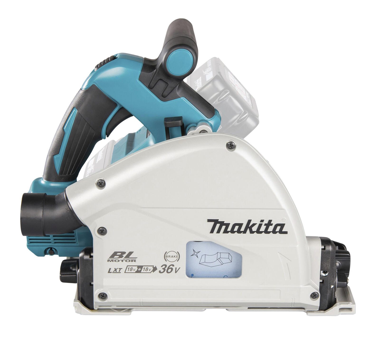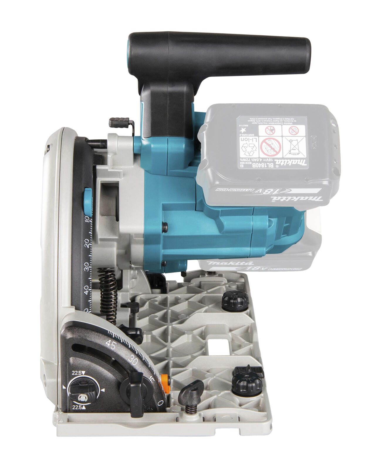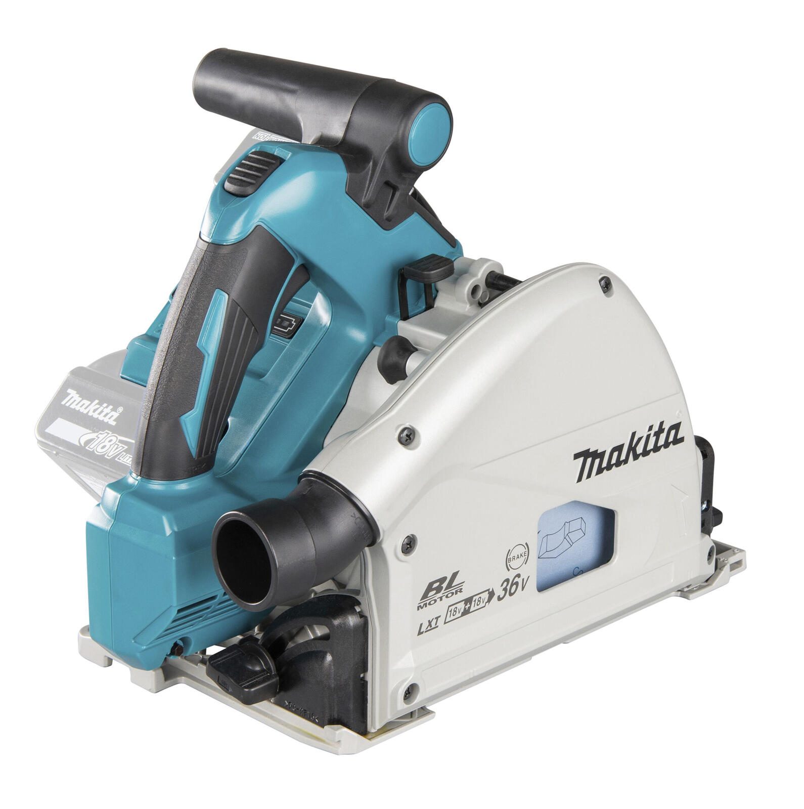 Die makita DSP601ZJU Akku-Tauchsäge vereint innovative Technik und Benutzerfreundlichkeit in einem kompakten Design. Mit einem Gewicht von nur 4,4 kg ist sie leicht zu handhaben und ideal für präzise Schnitte in verschiedenen Materialien. Die ADT Automatic Torque Drive Technology sorgt dafür, dass die Drehzahl während des Betriebs automatisch reguliert wird, was eine optimale Leistung je nach Schnittanforderung garantiert. Dies bedeutet, dass der Schnittpunkt bei allen Winkeleinstellungen an exakt der gleichen Stelle bleibt, was die Genauigkeit Ihrer Arbeiten erheblich verbessert. Die Abmessungen der Säge betragen 24,1 cm x 34,6 cm x 27,2 cm, wodurch sie sowohl für den professionellen Einsatz als auch für Heimwerkerprojekte geeignet ist. Die Lieferung umfasst ein hochwertiges Sägeblatt (165x1,45x20, 56Z EFFICUT), einen Sechskantstiftschlüssel (5 mm), einen MAKPAC der Größe 4 sowie ein Tiefziehteil. Bitte beachten Sie, dass der Akku und das Ladegerät nicht im Lieferumfang enthalten sind. Die Farbgestaltung in Blau und Schwarz verleiht der Säge nicht nur ein modernes Aussehen, sondern sorgt auch für eine gute Sichtbarkeit. Die Akku-Betriebsart ermöglicht Ihnen ein flexibles Arbeiten ohne störende Kabel und bietet somit eine hohe Mobilität. Die makita DSP601ZJU ist nicht nur ein Werkzeug, sondern ein zuverlässiger Partner für präzise und saubere Schnitte in Holz, Kunststoffen und anderen Materialien. Egal, ob Sie ein erfahrener Handwerker oder ein Hobbyist sind, diese Tauchsäge wird Ihre Erwartungen übertreffen und Ihnen helfen, Ihre Projekte effizient und professionell umzusetzen.Technische Daten