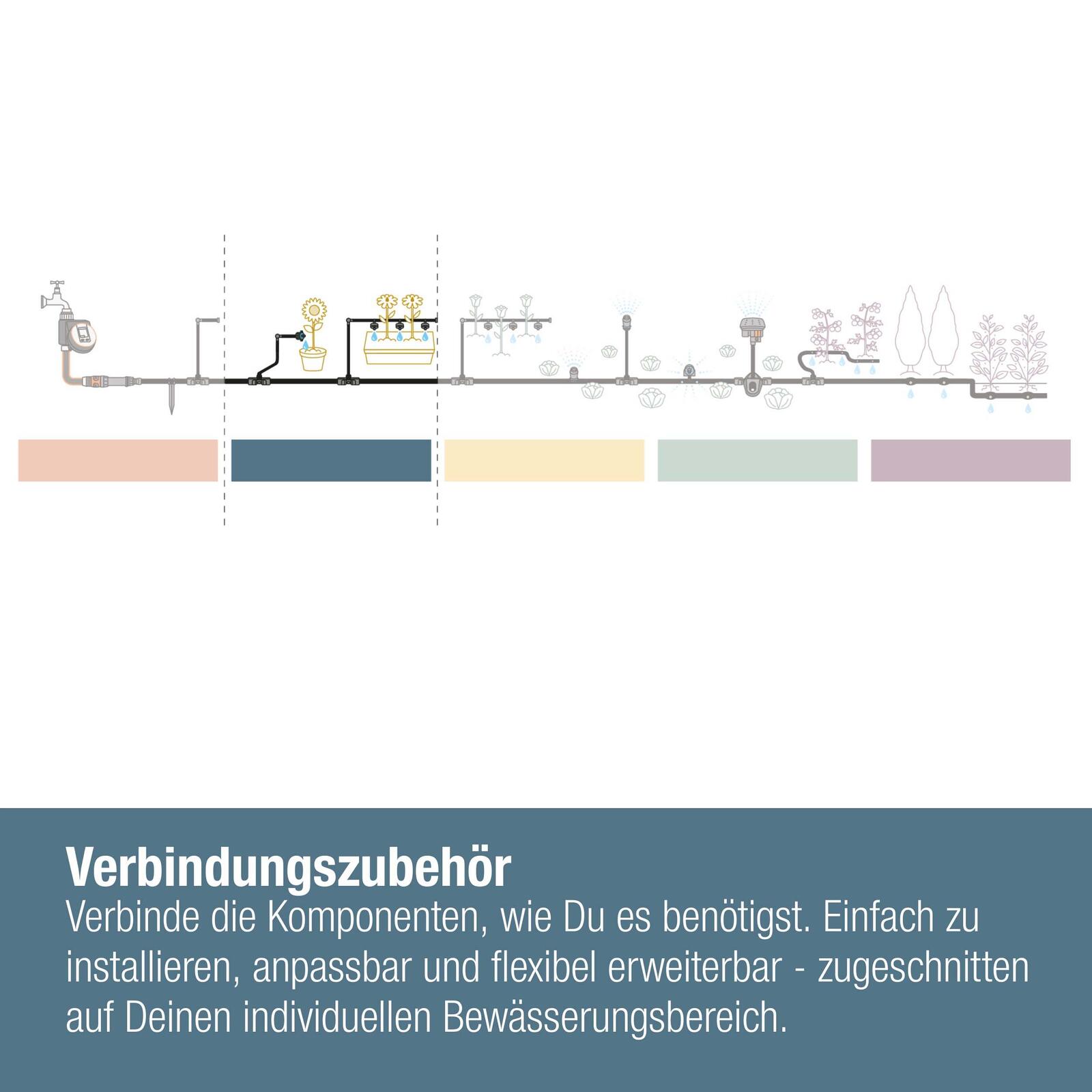 Dieses Anschlussstück ist speziell für das Micro-Drip-System konzipiert und bietet dir die Möglichkeit, die Bewässerung deiner Pflanzen individuell zu gestalten. Egal, ob du es in einem kleinen Garten oder in einem größeren Anbau verwendest, es sorgt dafür, dass jeder Bereich optimal mit Wasser versorgt wird. Vertraue auf die Qualität von GARDENA und erlebe, wie einfach und effektiv die Bewässerung deiner Pflanzen sein kann.