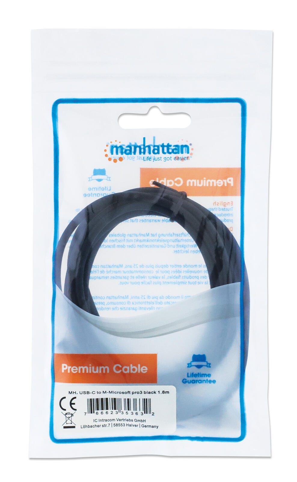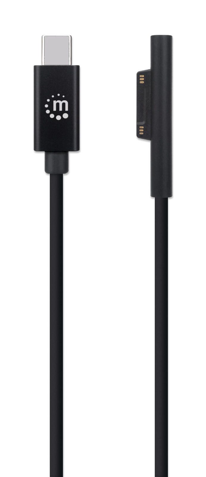 Manhattan USB-C to Surface Connect Cable, 1.8m, Male to Male. 15V/3A, Black, Lifetime Warranty, Polybag - USB Typ-C-Kabel - 24 pin USB-C zu Surface Connect - 1.8 m