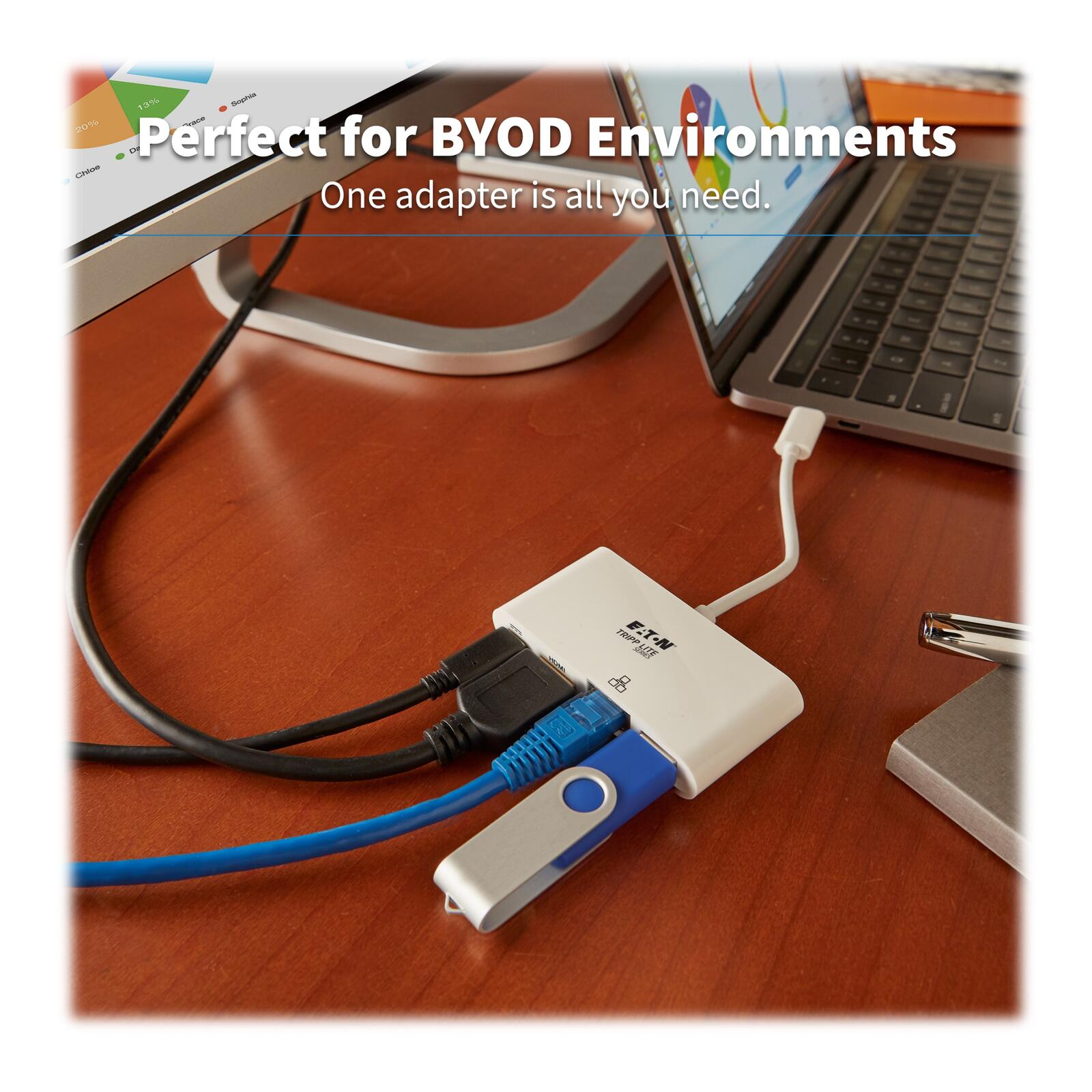 Eaton Tripp Lite Series USB-C Multiport Adapter - 4K HDMI, USB-A Port, GbE, 60W PD Charging, HDCP, White
