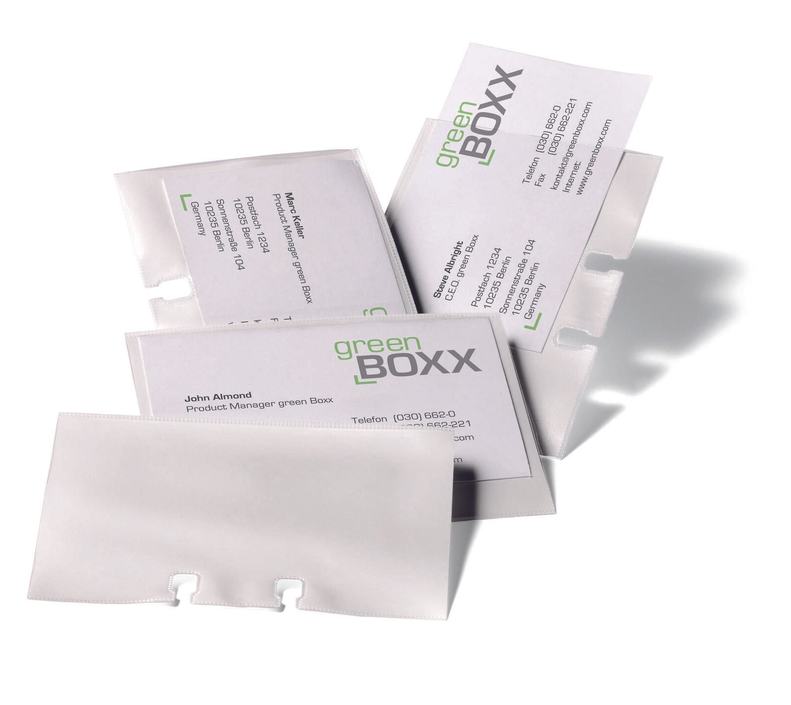 Die transparenten Hüllen ermöglichen eine klare Sicht auf die Inhalte, sodass Sie jederzeit schnell auf die benötigten Informationen zugreifen können. Das hochwertige Polypropylen-Material sorgt nicht nur für Langlebigkeit, sondern schützt Ihre Visitenkarten auch vor Abnutzung, Feuchtigkeit und anderen Umwelteinflüssen. Die Ausführung mit Zwischenblatt bietet zusätzlichen Schutz und sorgt dafür, dass Ihre Karten nicht knicken oder beschädigt werden.