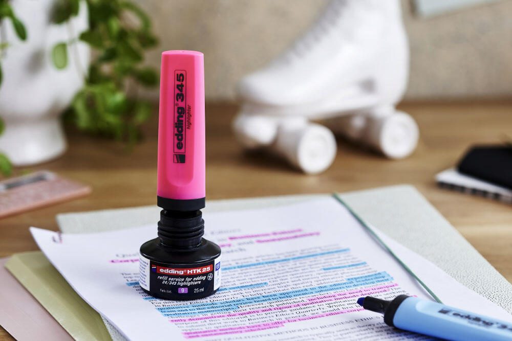 Die edding Nachfülltinte in hellgrün ist die ideale Lösung für alle, die ihre Textmarker im Handumdrehen wieder aufladen möchten. Mit einem Inhalt von 25,0 ml bietet diese hochwertige Tinte ausreichend Material, um deine Lieblingsmarker wieder in Topform zu bringen. Die hellgrüne Farbe sorgt dafür, dass deine Texte und Markierungen lebendig und auffällig bleiben, was besonders in Notizen, Präsentationen oder kreativen Projekten von Vorteil ist. Die edding Nachfülltinte ist speziell für Textmarker konzipiert, was bedeutet, dass du dir keine Sorgen um die Kompatibilität machen musst. Die Anwendung ist denkbar einfach: Einfach die Tinte in den Marker einfüllen und schon kannst du wieder loslegen. Dank der hochwertigen Formel erhältst du eine gleichmäßige Farbverteilung, die ein sauberes und präzises Schreiben ermöglicht. Die hellgrüne Tinte ist nicht nur funktional, sondern auch umweltfreundlich, da du durch das Nachfüllen deiner Marker Abfall reduzierst und Ressourcen schonst. edding steht für Qualität und Langlebigkeit, sodass du dir sicher sein kannst, dass du mit dieser Nachfülltinte eine nachhaltige Wahl triffst. Egal, ob für den Büroalltag, das Studium oder kreative Hobbys – die edding Nachfülltinte hellgrün ist ein unverzichtbares Zubehör für jeden, der Wert auf Qualität und Effizienz legt. Vertraue auf die bewährte Marke edding und bringe deine Textmarker mit dieser Nachfülltinte wieder zum Strahlen.Technische Daten