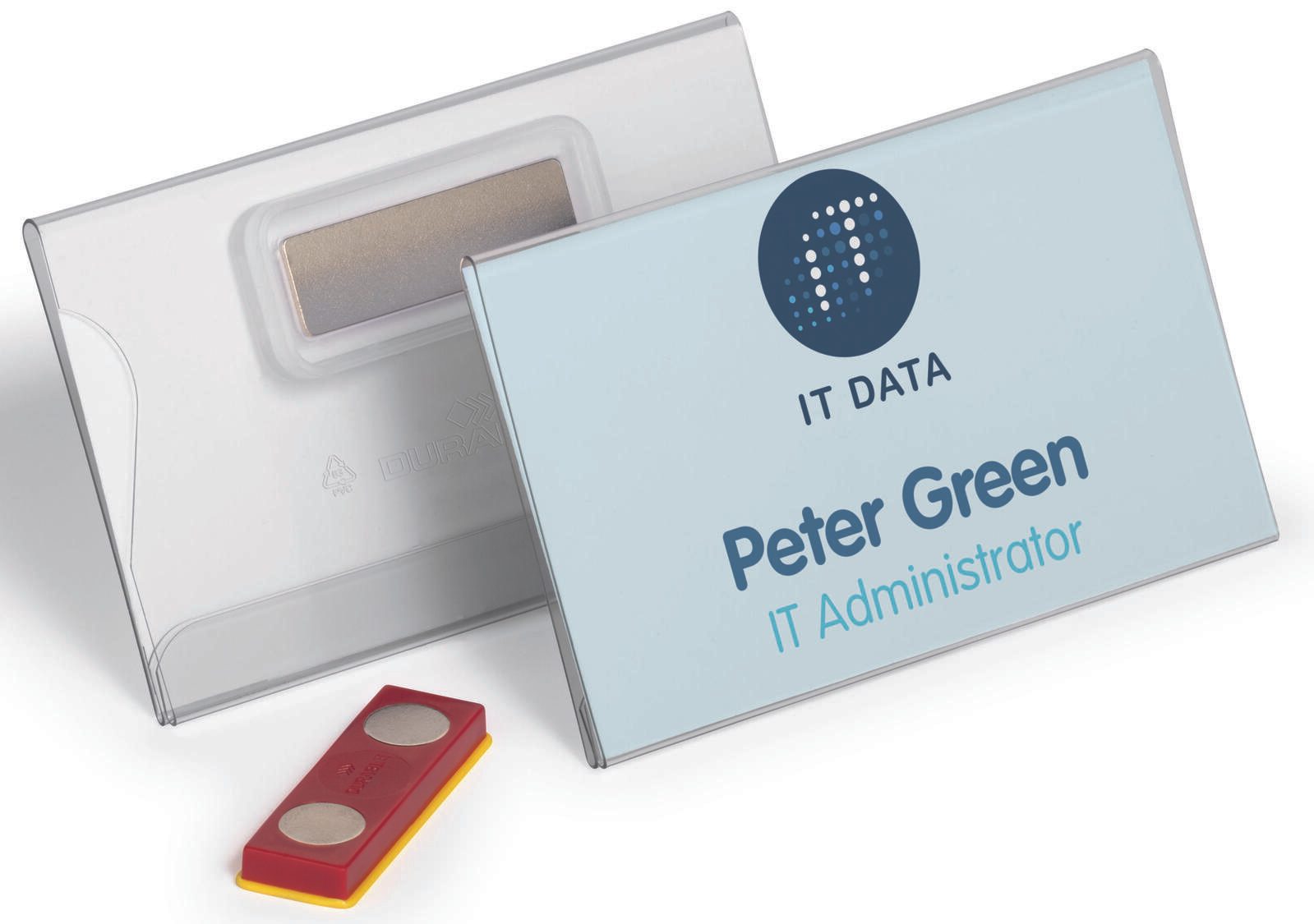 Die DURABLE Namensschilder in der praktischen Größe von 9 cm x 5.4 cm sind die ideale Lösung für deine nächsten Massenveranstaltungen wie Messen, Konferenzen oder Seminare. Hergestellt aus hochwertiger Hartfolie, bieten diese transparenten Namensschilder nicht nur eine ansprechende Optik, sondern auch eine hohe Widerstandsfähigkeit. Die transparente Farbe sorgt dafür, dass die Namen und Informationen, die du einfügst, klar und deutlich sichtbar sind, was eine professionelle Präsentation deiner Gäste oder Mitarbeiter gewährleistet. Ein besonderes Merkmal dieser Namensschilder ist die magnetische Befestigung, die ein einfaches Anbringen und Abnehmen ermöglicht, ohne die Kleidung zu beschädigen. Dies ist besonders vorteilhaft in Umgebungen, in denen häufige Wechsel der Namensschilder erforderlich sind. Die Verwendung von Magneten sorgt zudem dafür, dass die Schilder sicher an Ort und Stelle bleiben, auch wenn es etwas turbulenter zugeht. Mit einem Pack von 25 Stück bist du bestens ausgestattet, um eine Vielzahl von Teilnehmern zu kennzeichnen. Egal, ob du die Namensschilder für ein großes Event oder für kleinere Gruppen benötigst, die DURABLE Namensschilder bieten die Flexibilität und Qualität, die du suchst. Die Kombination aus robustem Material und durchdachtem Design macht diese Namensschilder zu einer praktischen Wahl für jeden Veranstalter. Vertraue auf die Erfahrung und Qualität von DURABLE, um deinen Veranstaltungen einen professionellen Touch zu verleihen. Die transparenten Namensschilder sind nicht nur funktional, sondern auch ein stilvolles Accessoire, das den Gesamteindruck deiner Veranstaltung positiv beeinflusst.Technische Daten