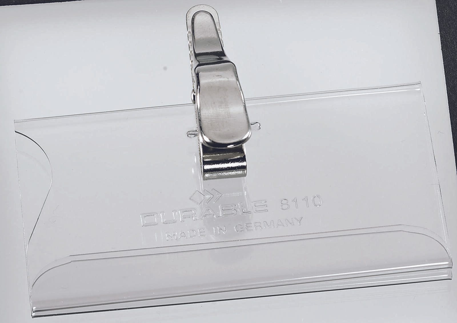 Die DURABLE Namensschilder in der transparenten Ausführung sind die ideale Lösung für alle, die bei Massenveranstaltungen wie Messen, Konferenzen oder Seminaren einen professionellen Eindruck hinterlassen möchten. Mit einer praktischen Größe von 7.5 cm x 4 cm bieten diese Einsteckschildchen ausreichend Platz für deinen Namen und weitere Informationen, ohne dabei aufdringlich zu wirken. Hergestellt aus hochwertiger Hartfolie, zeichnen sich diese Namensschilder durch ihre Langlebigkeit und Widerstandsfähigkeit aus. Die transparente Farbe sorgt dafür, dass die Inhalte klar und deutlich sichtbar sind, während die elegante Optik das Gesamtbild abrundet. Die Befestigung erfolgt unkompliziert über eine Krokoklemme, die eine sichere Anbringung an Kleidung oder anderen Textilien gewährleistet. Ein Pack enthält 25 Stück, sodass du bestens für deine nächsten Veranstaltungen gerüstet bist. Egal, ob du an einem großen Event teilnimmst oder selbst eine Veranstaltung organisierst, die DURABLE Namensschilder sind ein unverzichtbares Hilfsmittel. Sie tragen nicht nur zur Identifikation bei, sondern fördern auch den Austausch und die Vernetzung zwischen den Teilnehmern. Entscheide dich für die DURABLE Namensschilder, um einen professionellen und einladenden Eindruck zu hinterlassen. Sie sind die perfekte Wahl für alle, die Wert auf Qualität und Funktionalität legen.Technische Daten