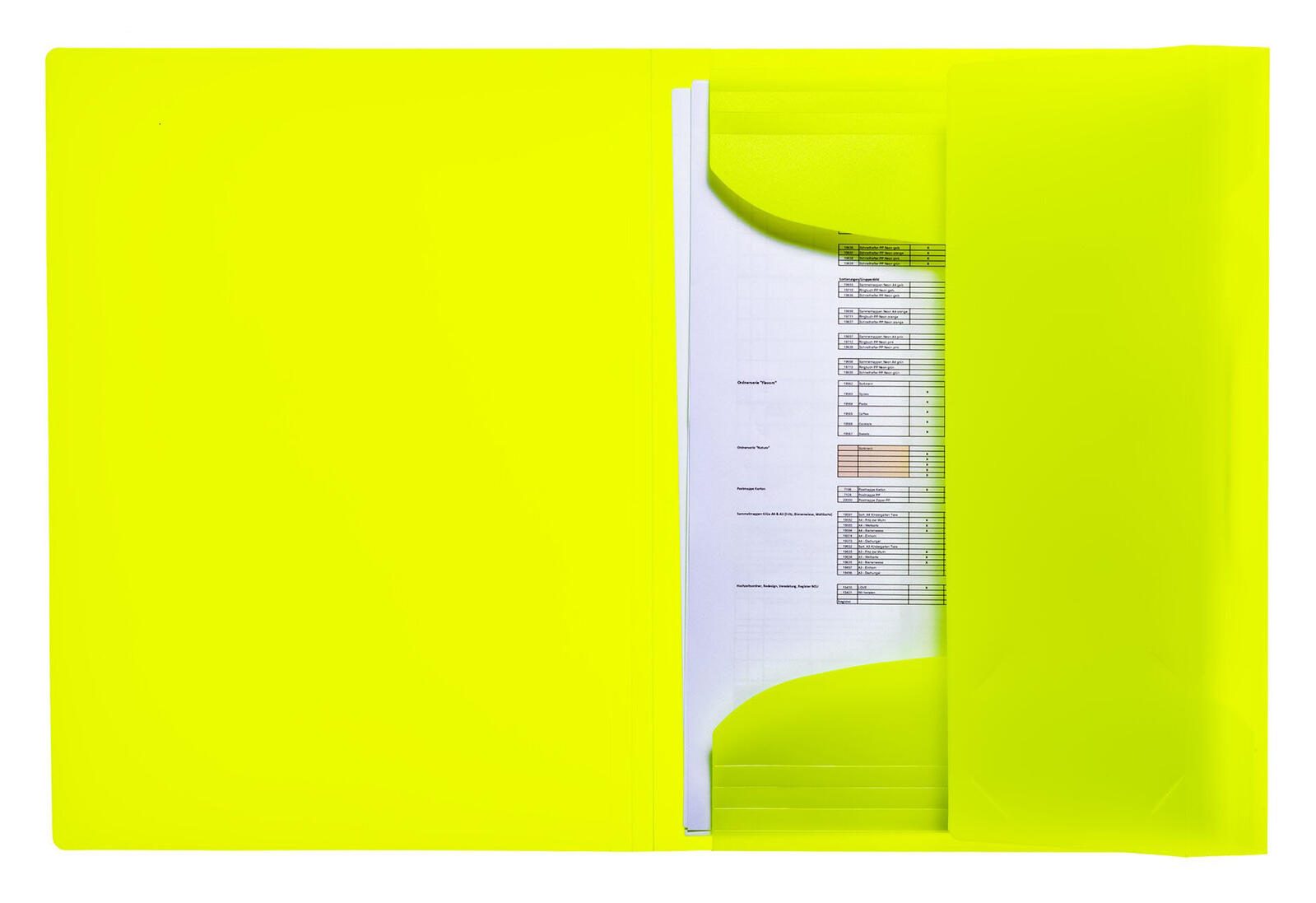 Die Sammelmappe A4 in leuchtendem Neon-Gelb ist nicht nur ein praktischer Begleiter im Alltag, sondern auch ein echter Hingucker. Mit den Eckspannklappen bietet sie nicht nur Schutz vor dem Herausfallen der Dokumente, sondern sorgt auch für eine sichere Aufbewahrung und schnellen Zugriff auf wichtige Unterlagen in DIN A4 Format.