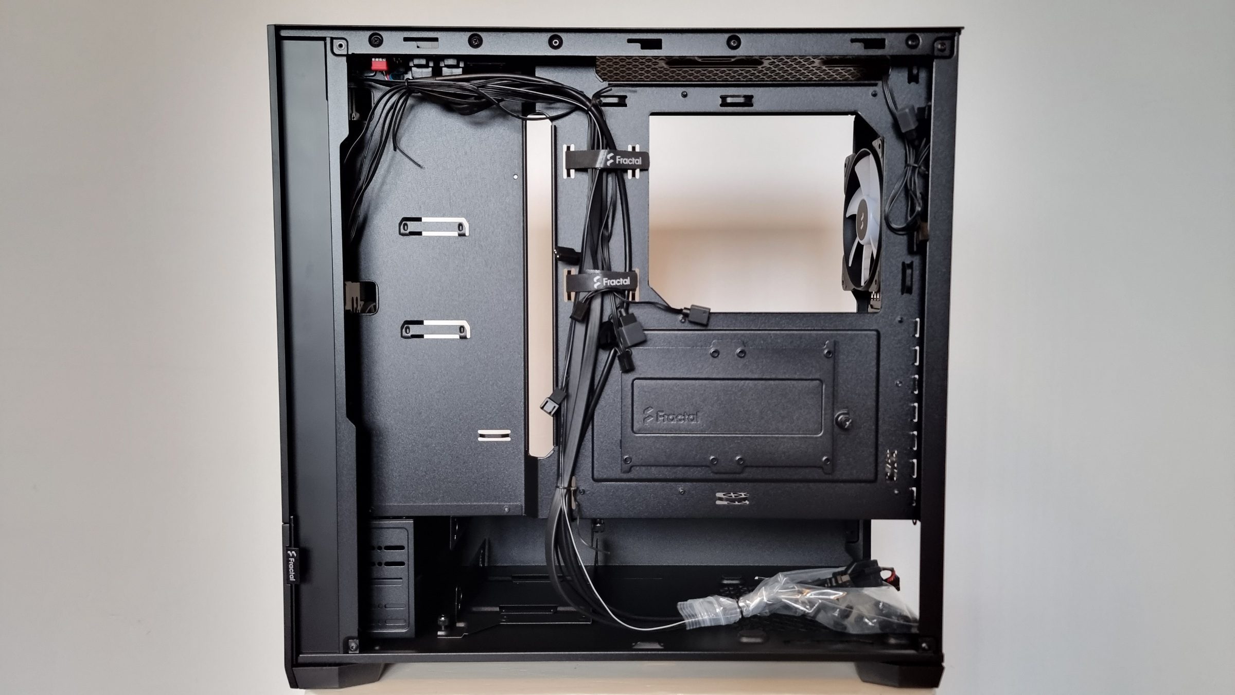 Einen optischen Kritikpunkt gibt es bei den Aussparungen für die Kabelverbindungen zwischen Mainboard- und Rückseite. Hier wären Gummiabdeckung schön gewesen. Fairerweise muss allerdings erwähnt werden, dass sich Fractal beim Verzicht auf diese Elemente in dieser Preisklasse auf dem Niveau der Konkurrenz bewegt.