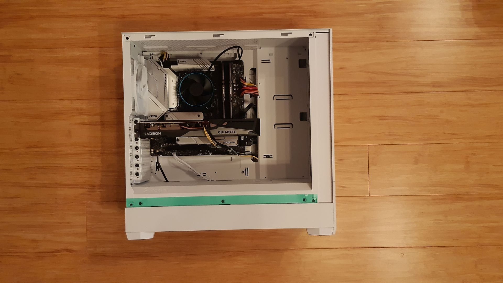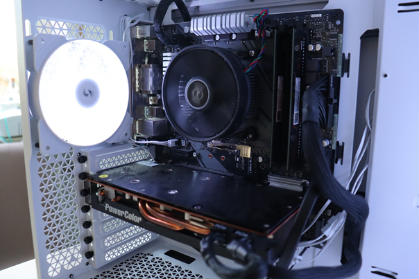 Mein altes Gehäuse war ein Sharkoon Gehäuse in Schwarz, was jetzt durch das Fractal Gehäuse ersetzt wurde. Das Herz meines Rechners ist ein AMD Ryzen 5 3500X Prozessor, dieser wird gekühlt durch einen Alpenföhn Silent SI. Die Arbeitsleistung kommt durch 2 x 8GB DDR4 G. Skill Aegis in Schwarz. Meine Grafikpracht wird geliefert von einer stabilen 8GB AMD Radeon RX 5700 XT PowerColor Dual, das ganze wird getragen von dem ASRock B450M Pro4-F Mainboard und durch das 600 Watt be quiet Netzteil mit ausreichend Strom versorgt. Dazu habe ich dann noch 2 SSD 2.5 Zoll Festplatten und weil ich doch ab und an auf CD oder DVD zurückgreife, brauchte ich auch noch ein DVD-RW / DVD-ROM Laufwerk.