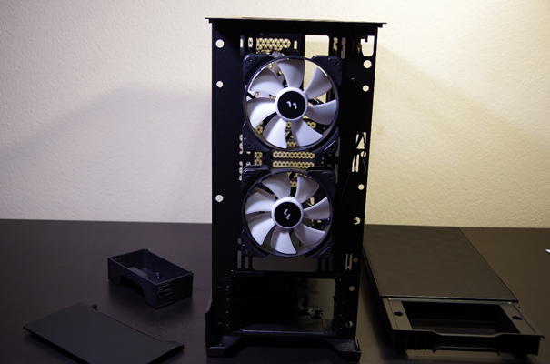 Die Montage der Hardware erfolgte ohne Probleme. Die Seitenteile lassen sich durch Rändelschrauben einfach öffnen und man kann direkt mit dem Einbau seiner Hardware starten.