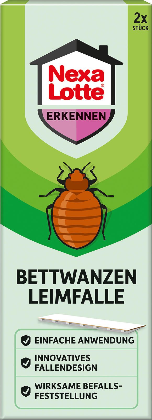 Die Nexa Lotte® Bettwanzen-Klebefalle ist ein Produkt zur Erkennung und Bekämpfung von Bettwanzen. Sie besteht aus weißer Pappe und wird im Set mit zwei Stück geliefert. Die Falle dient dazu, Bettwanzen effektiv einzufangen, indem sie auf einer klebrigen Oberfläche haften bleiben.