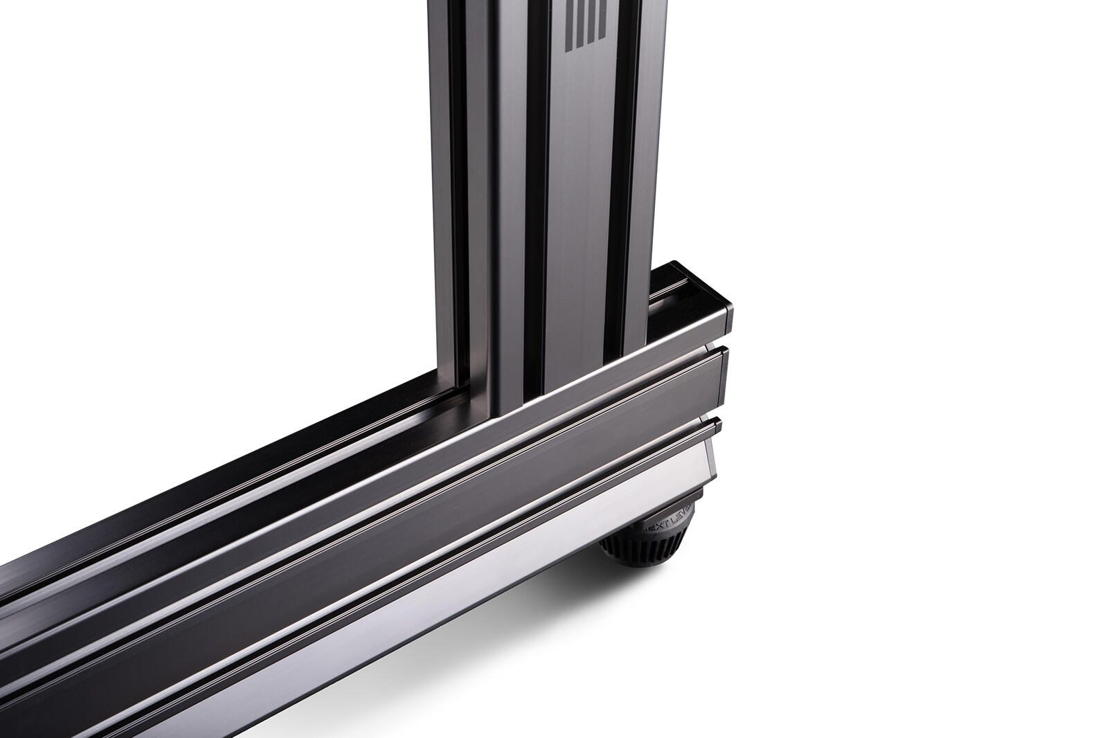 Von der eloxierten kohlenstoffgrauen Oberfläche bis hin zu den kundenspezifischen schwarz galvanisierten Hardware- und Kabelmanagement-Clips bietet der Elite Freestanding Quad Monitor Stand branchenführende Vielseitigkeit und Qualitätsstandards für den perfektionistischen Sim-Racer.