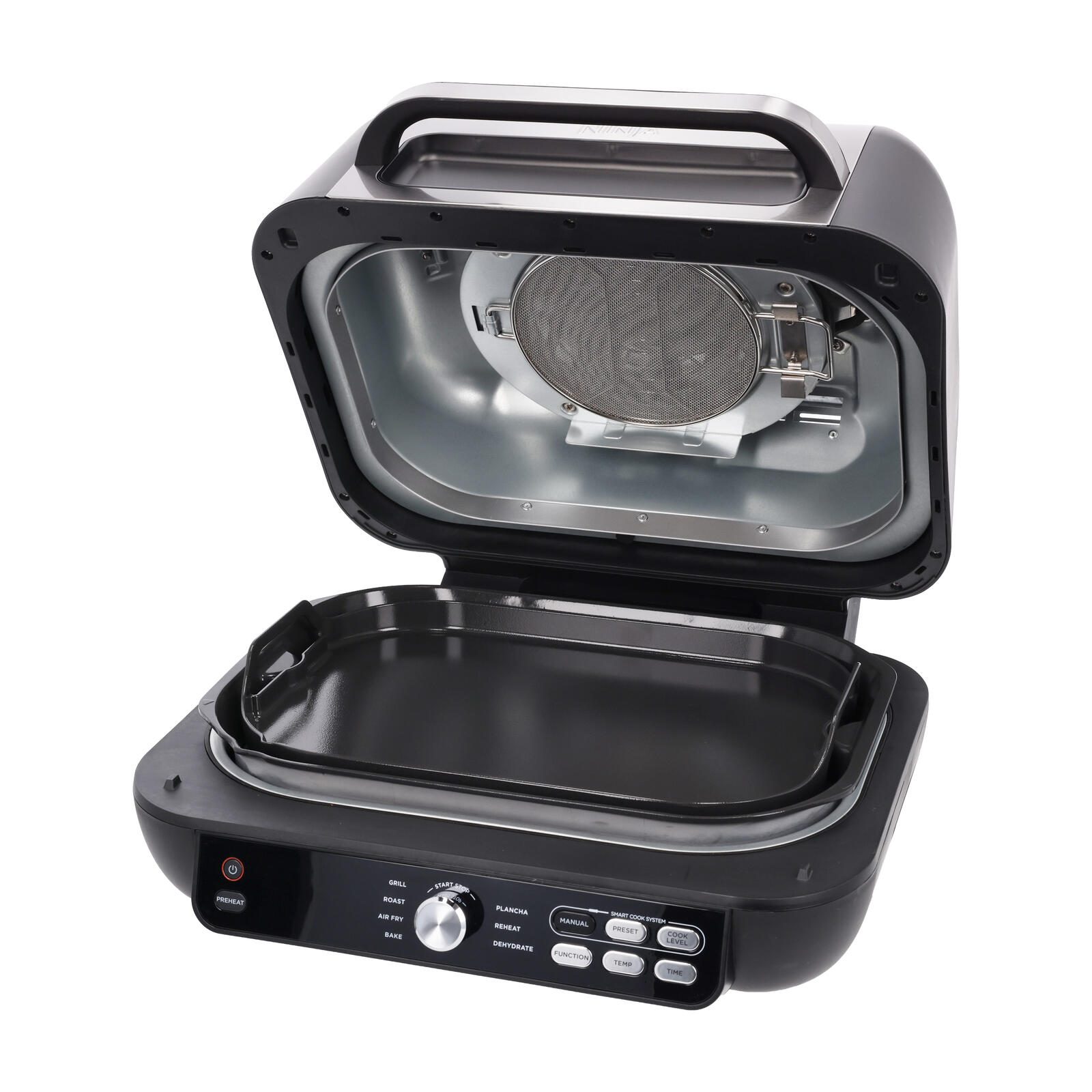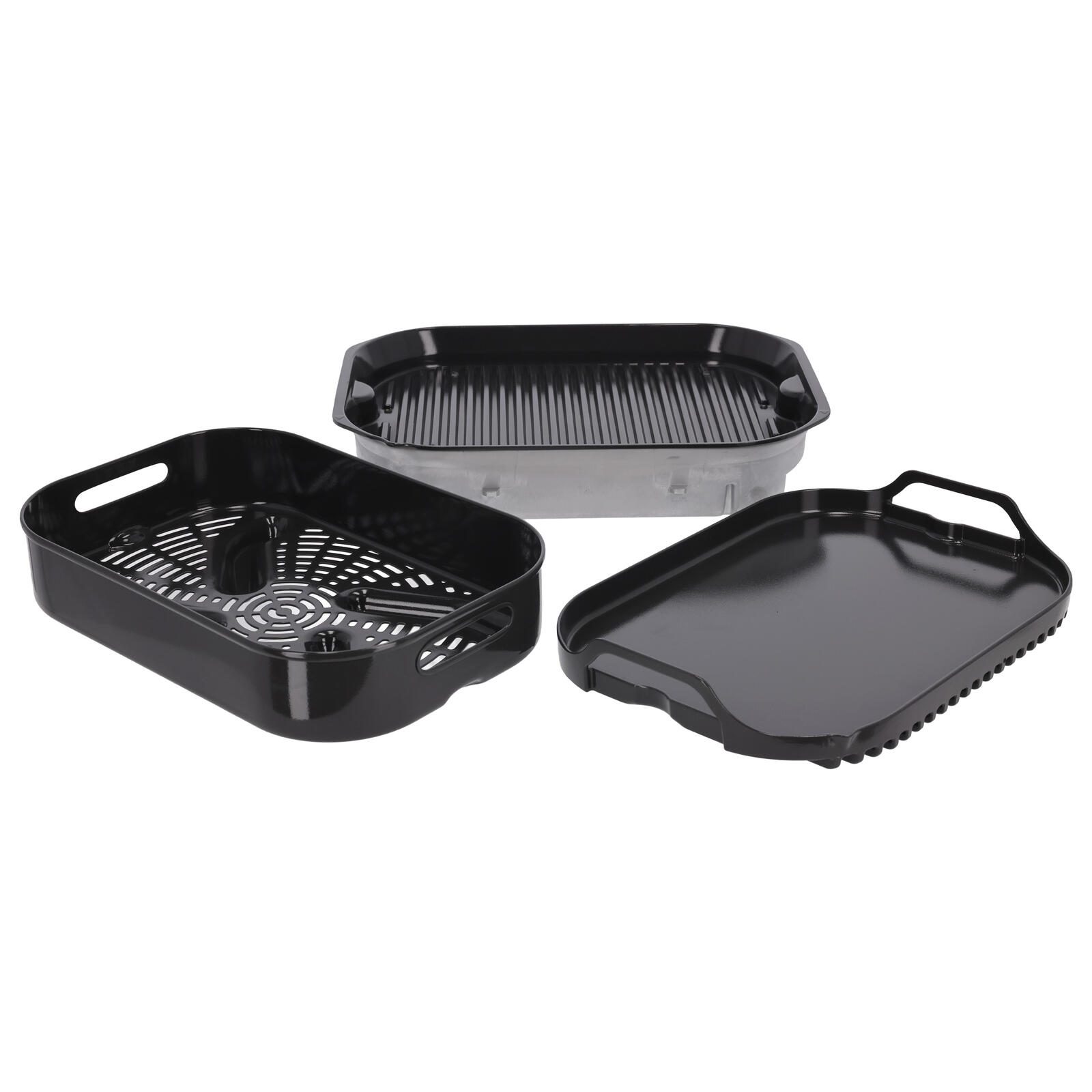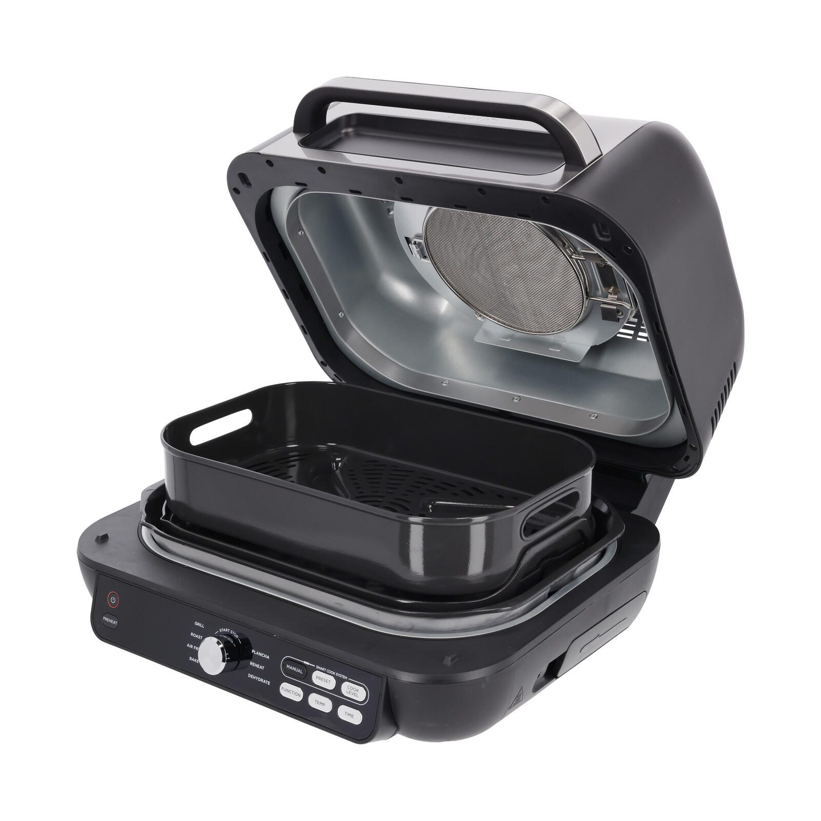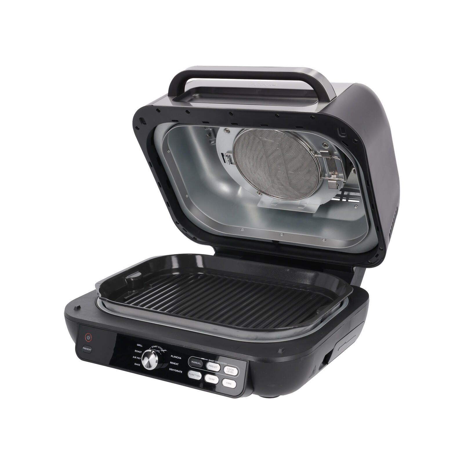 - 7 Zubereitungsfunktionen: Grillen, Plancha, Heißluft-Frittieren, Backen, Braten, Aufwärmen und Dörren.