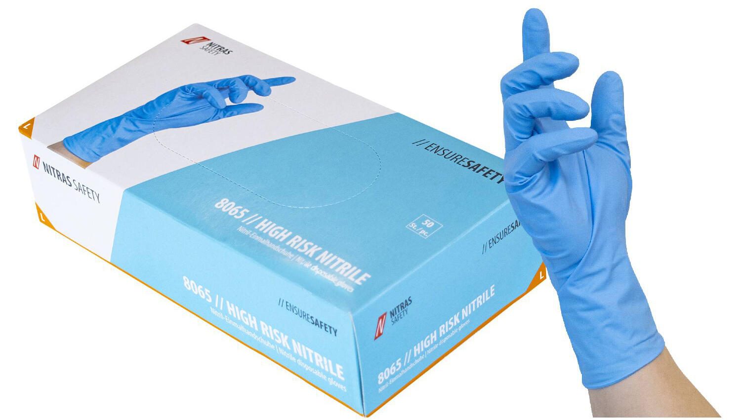 NITRAS® Einmalhandschuhe HIGH RISK NITRILE, Größe L, blau