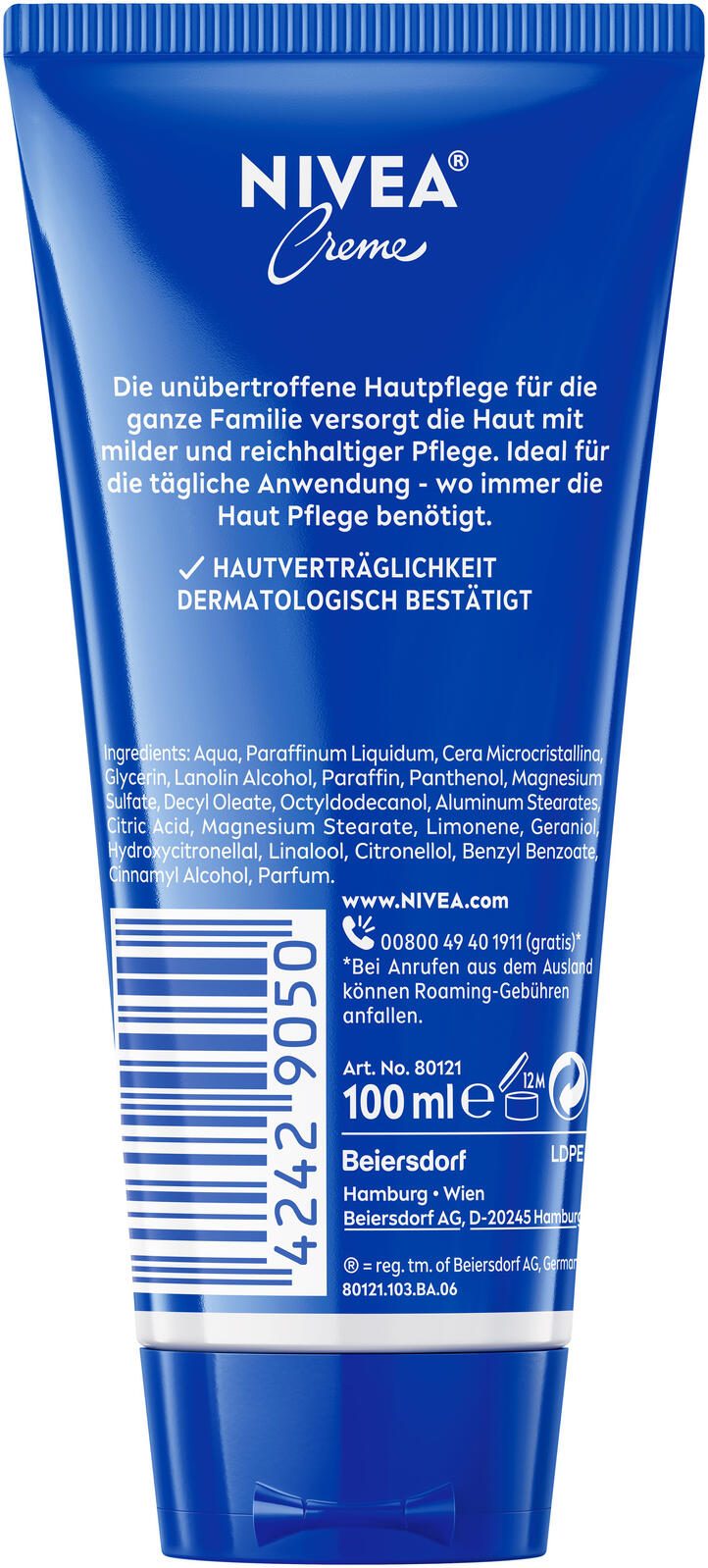 Mit einem Inhalt von 100 ml ist die NIVEA Hautcreme ideal für die tägliche Anwendung und passt in jede Pflegeroutine. Sie verbindet bewährte Pflegequalität mit einem angenehmen Hautgefühl und ist ein unverzichtbarer Begleiter für die tägliche Hautpflege.
