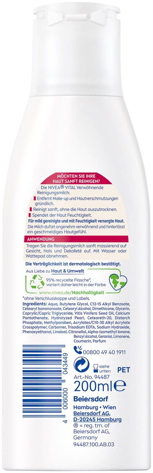 NIVEA VITAL Reinigungsmilch 200,0 ml
