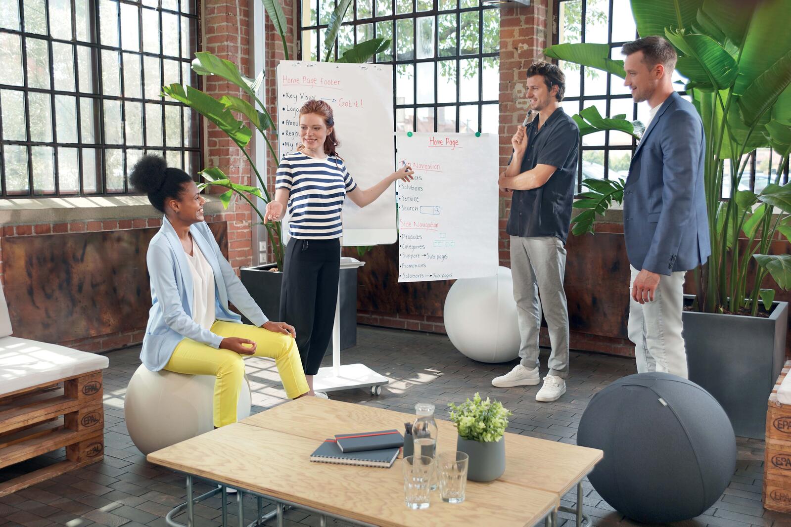 - Materialeigenschaften: magnethaftend, beschreibbar, höhenverstellbar, mit Rollen