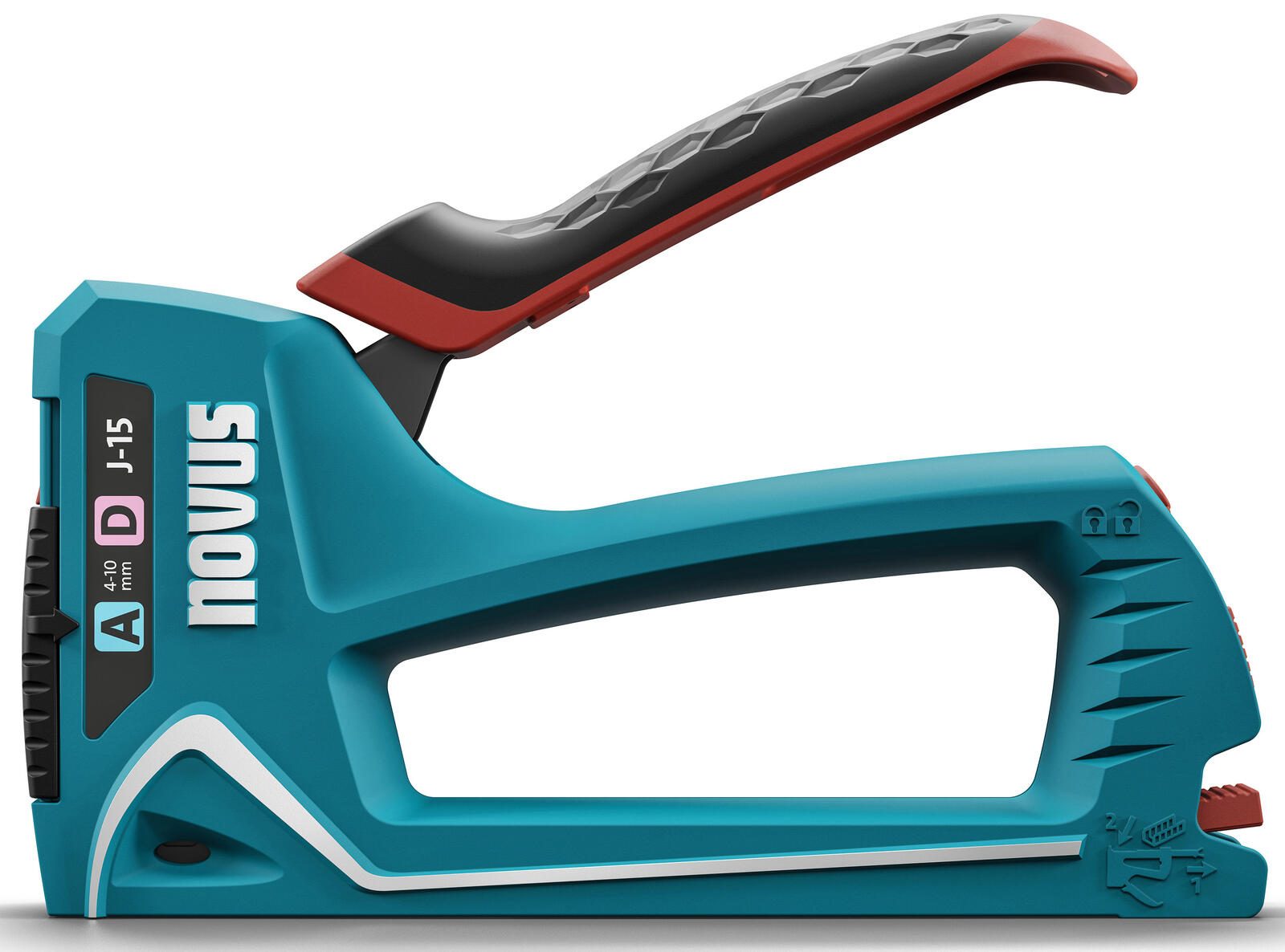 Der novus Handtacker J-15 ist ein vielseitiges Heftgerät, das speziell für den Einsatz im Büro oder zu Hause entwickelt wurde. Er ist in den Farben türkis und weiß gehalten und überzeugt durch eine einfache Handhabung. Das Modell ist für verschiedene Klammergrößen geeignet, nämlich 4 mm, 6 mm, 8 mm und 10 mm, wodurch Du flexibel unterschiedliche Materialien und Papierstärken heften kannst.