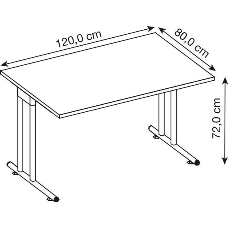 Das stabile Gestell aus hochwertigem Stahl sorgt für eine hohe Standfestigkeit und Langlebigkeit. Die silberne Farbgebung des Gestells verleiht dem Schreibtisch eine moderne Note und harmoniert perfekt mit der weißen Tischplatte. Die Abmessungen von 120 cm Breite, 80 cm Tiefe und 72 cm Höhe bieten Ihnen genügend Bewegungsfreiheit und Komfort während Ihrer Arbeit.