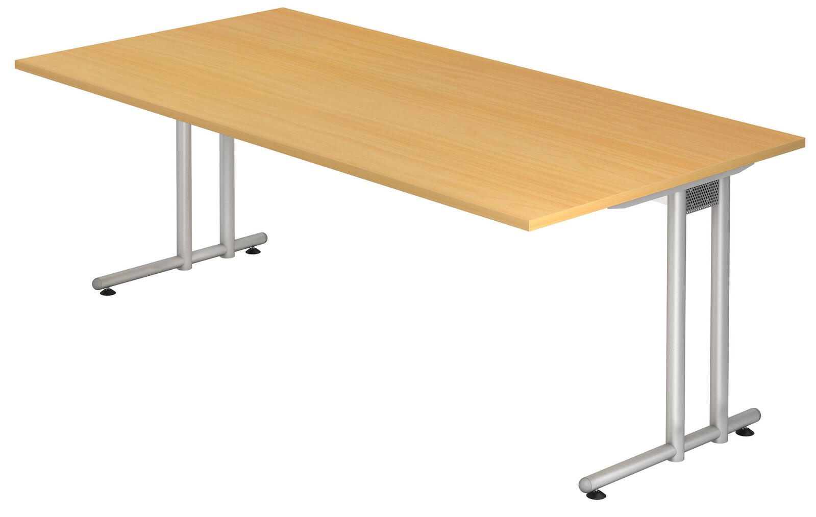 Das elegante C-Fuß-Gestell in schickem Silber sorgt nicht nur für einen modernen Look, sondern auch für eine hohe Stabilität und Langlebigkeit. Die warmen Farbtöne der Buche verleihen dem Schreibtisch eine einladende Atmosphäre, die das Arbeiten angenehm gestaltet. Die Kombination aus robustem Material und durchdachtem Design macht diesen Schreibtisch zu einem zuverlässigen Partner in Ihrem Arbeitsalltag.