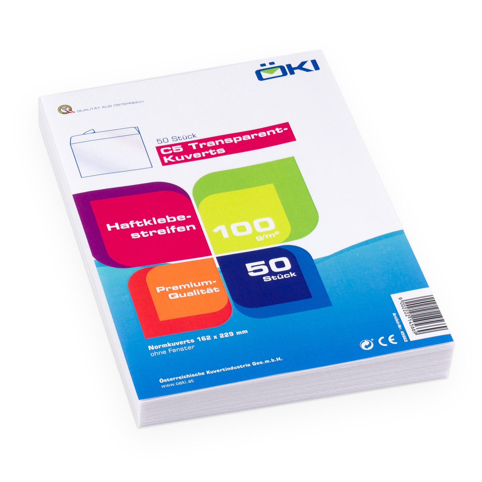 Die ÖKI Briefumschläge DIN C5 ohne Fenster sind die ideale Lösung für deine Versandbedürfnisse. Mit einem attraktiven, transparenten Design bieten diese Umschläge nicht nur eine ansprechende Optik, sondern auch eine hohe Funktionalität. Hergestellt aus holzfreiem Papier mit einem Gewicht von 100 g/m², garantieren sie eine hervorragende Stabilität und ein angenehmes Haptikgefühl. Die haftklebende Verschlussmechanik sorgt dafür, dass deine Dokumente sicher und zuverlässig geschützt sind. Du kannst sie schnell und unkompliziert verschließen, ohne zusätzliche Klebstoffe oder Verschlüsse verwenden zu müssen. Dies spart Zeit und erleichtert den gesamten Versandprozess erheblich. Da die Umschläge ohne Fenster sind, bleibt der Inhalt vollständig privat und vertraulich, was sie besonders geeignet für sensible Dokumente macht. Mit einem praktischen Format von DIN C5 bieten diese Briefumschläge ausreichend Platz für deine Briefe, Einladungen oder andere wichtige Unterlagen. Ob für den geschäftlichen oder privaten Gebrauch, die ÖKI Briefumschläge sind vielseitig einsetzbar und passen sich deinen individuellen Anforderungen an. In jeder Packung befinden sich 50 Stück, sodass du für zahlreiche Versandaktionen gut ausgestattet bist. Die transparente Farbe verleiht den Umschlägen eine moderne Note und lässt sich hervorragend in verschiedene Kontexten integrieren. Die ÖKI Briefumschläge sind die perfekte Wahl für alle, die Wert auf Qualität und Zuverlässigkeit legen.Technische Daten