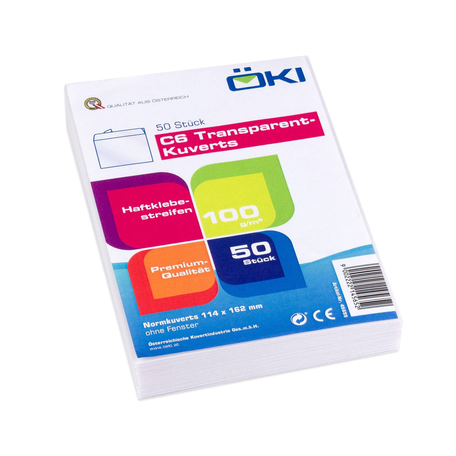 Die ÖKI Briefumschläge DIN C6 ohne Fenster sind die ideale Wahl für all deine Versandbedürfnisse. Hergestellt aus hochwertigem, holzfreiem Papier mit einem Gewicht von 100 g/m², bieten diese Umschläge nicht nur eine ansprechende Optik, sondern auch eine hervorragende Haptik. Die transparente Farbe verleiht deinen Sendungen einen eleganten Touch und sorgt dafür, dass der Inhalt stilvoll präsentiert wird. Ein besonderes Merkmal dieser Briefumschläge ist die haftklebende Klebung, die ein einfaches und schnelles Verschließen ermöglicht. Du musst dir keine Gedanken über zusätzliche Klebstoffe oder das Versäubern von Klebestellen machen; einfach die Schutzfolie abziehen und den Umschlag schließen. Dies spart Zeit und sorgt für einen reibungslosen Versand, egal ob für persönliche Briefe, Einladungen oder geschäftliche Korrespondenz. Die Umschläge kommen im praktischen Pack mit 50 Stück, was sie besonders wirtschaftlich macht. Dank des DIN C6 Formats sind sie perfekt geeignet für standardisierte Dokumente, Karten oder Fotos. Da sie ohne Fenster sind, bleibt der Inhalt vollständig privat und geschützt vor neugierigen Blicken. Die ÖKI Briefumschläge sind nicht nur funktional, sondern auch umweltfreundlich, da sie aus nachhaltigen Materialien hergestellt werden. Setze auf Qualität und Stil bei deinem nächsten Versand und wähle die ÖKI Briefumschläge DIN C6 ohne Fenster haftklebend für eine zuverlässige und ansprechende Lösung.Technische Daten