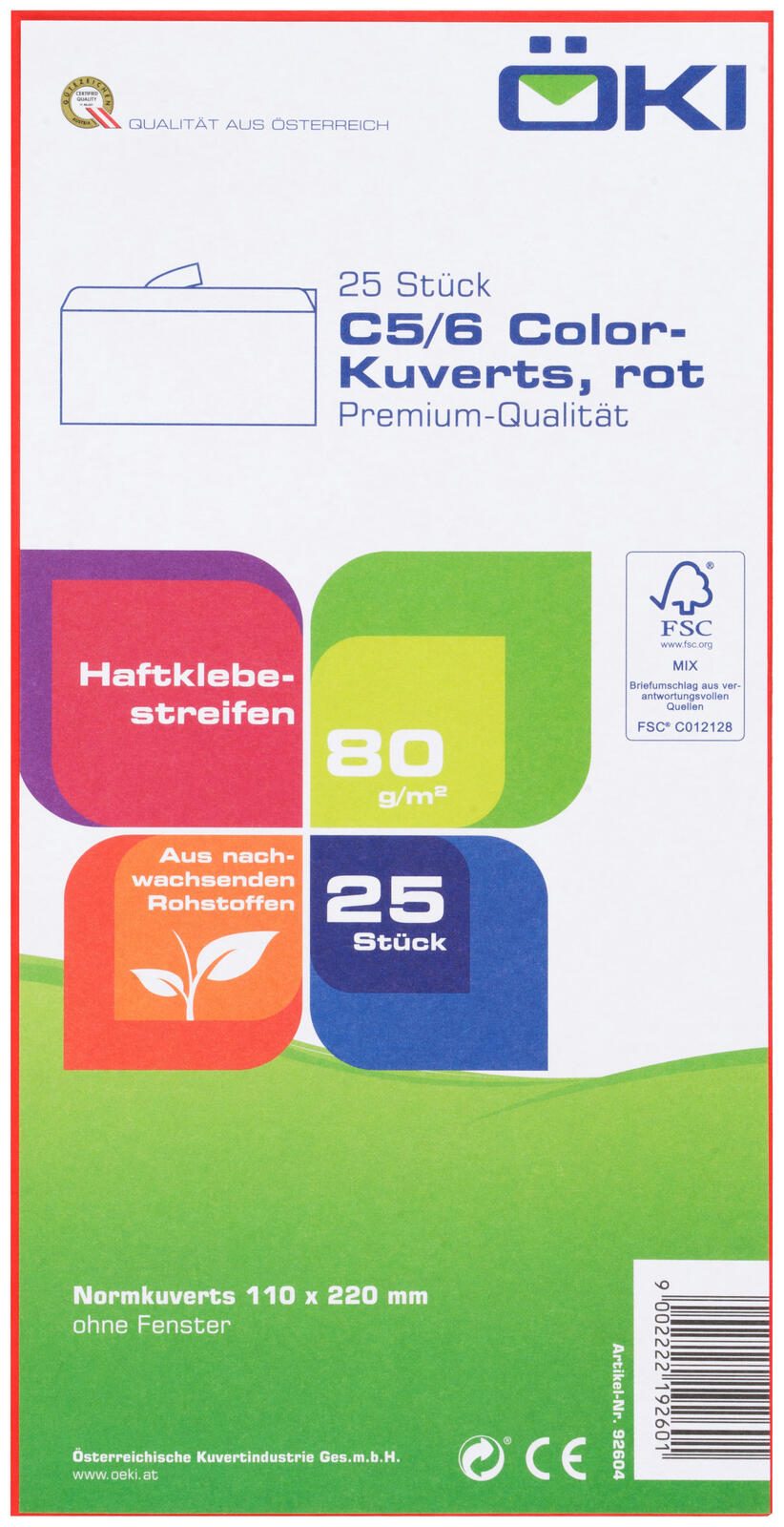 ÖKI Briefumschlag rot DIN lang ohne Fenster haftklebend 25 St.