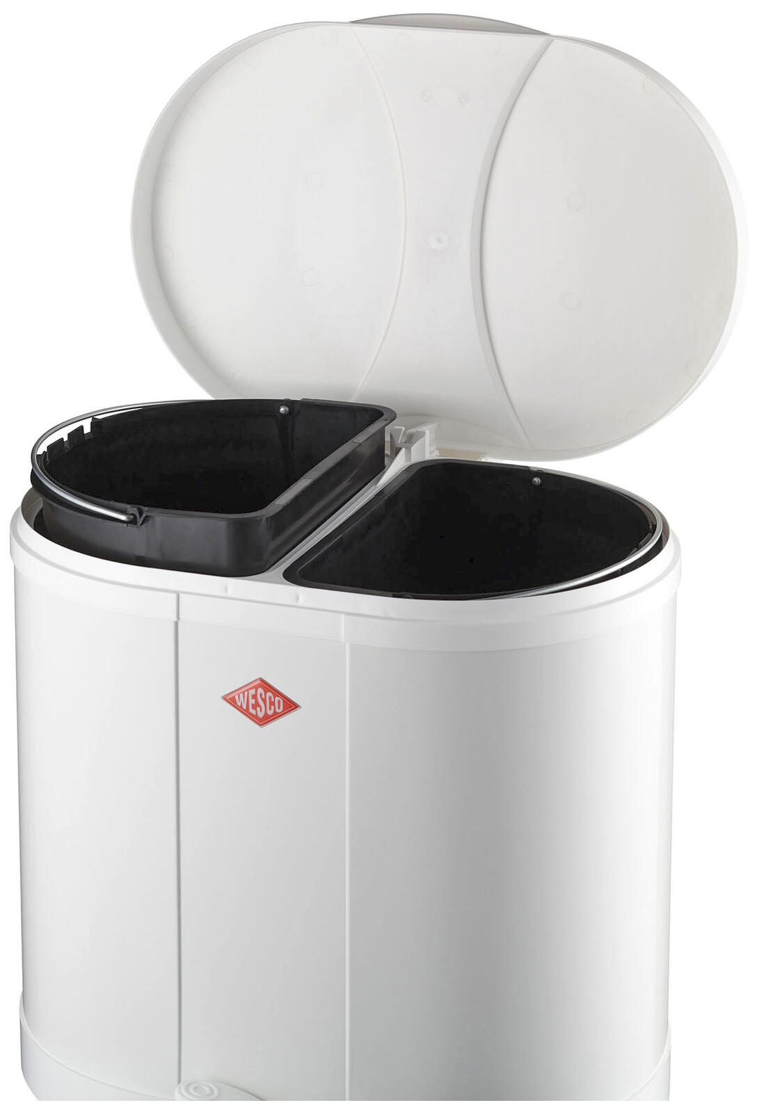 Der WESCO Mülltrenner 2x 15,0 l in elegantem Weiß ist die ideale Lösung für umweltbewusste Haushalte, die Wert auf Ordnung und Stil legen. Mit einem Fassungsvermögen von zwei Inneneimern zu je 15,0 Litern bietet dieser Mülltrenner ausreichend Platz für die getrennte Sammlung von Abfällen, wodurch Recycling und Mülltrennung zum Kinderspiel werden. Hergestellt aus robustem Stahlblech und pulverbeschichtet, überzeugt der WESCO Mülltrenner nicht nur durch seine Langlebigkeit, sondern auch durch seine ansprechende Optik, die sich harmonisch in jeden Wohnraum einfügt. Der praktische Tretmechanismus ermöglicht eine hygienische und bequeme Handhabung, ohne dass du den Deckel mit den Händen berühren musst. Der Klappdeckel sorgt dafür, dass der Müllbehälter jederzeit leicht zugänglich ist und gleichzeitig unangenehme Gerüche im Inneren bleiben. Der WESCO Mülltrenner ist speziell für den Innenbereich konzipiert und eignet sich perfekt für Küchen, Büros oder andere Wohnräume. Die schlichte weiße Farbe des Behälters verleiht deinem Raum eine frische Note und lässt sich mühelos in verschiedene Einrichtungsstile integrieren. Durch die Verwendung von hochwertigem Material wird nicht nur die Funktionalität, sondern auch die Nachhaltigkeit gefördert, was ihn zu einer verantwortungsbewussten Wahl für umweltbewusste Verbraucher macht. Mit dem WESCO Mülltrenner 2x 15,0 l kannst du nicht nur deinen Müll effizient trennen, sondern auch einen Beitrag zum Umweltschutz leisten. Die Kombination aus ansprechendem Design, durchdachter Funktionalität und hochwertigen Materialien macht diesen Mülltrenner zu einem unverzichtbaren Accessoire in deinem Zuhause.Technische Daten
