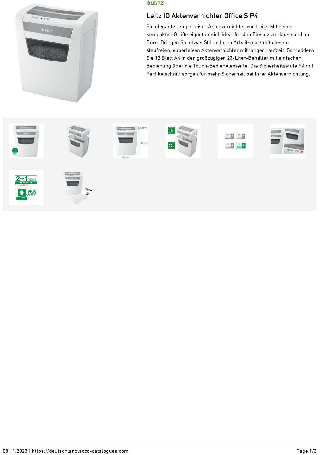 Mit dem LEITZ Aktenvernichter mit Partikelschnitt office S P4 hast du die Gewissheit, dass vertrauliche Dokumente effizient und sicher vernichtet werden, ohne dabei Abstriche beim Komfort machen zu müssen. Erlebe die Vorteile dieses hochwertigen Aktenvernichters, hergestellt von LEITZ, einem renommierten Hersteller für Bürobedarf.