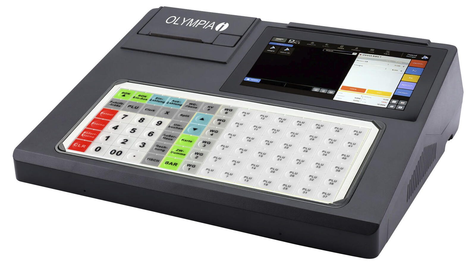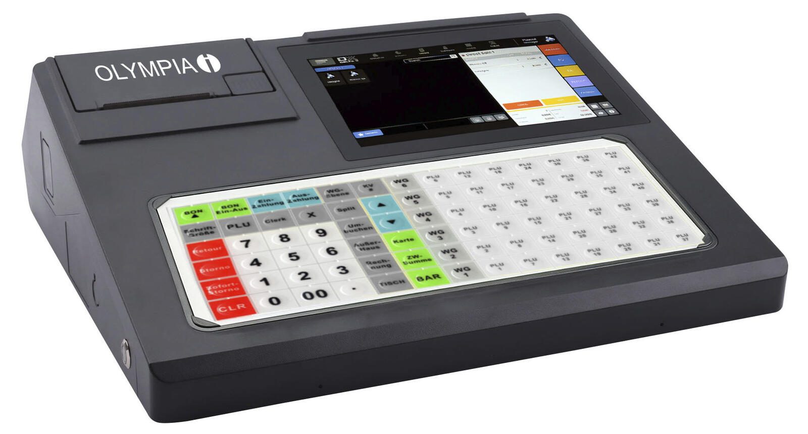 - Anzahl Bediener: 50, Warengruppen: 100, Festpreisspeicher (PLUs): 10.000