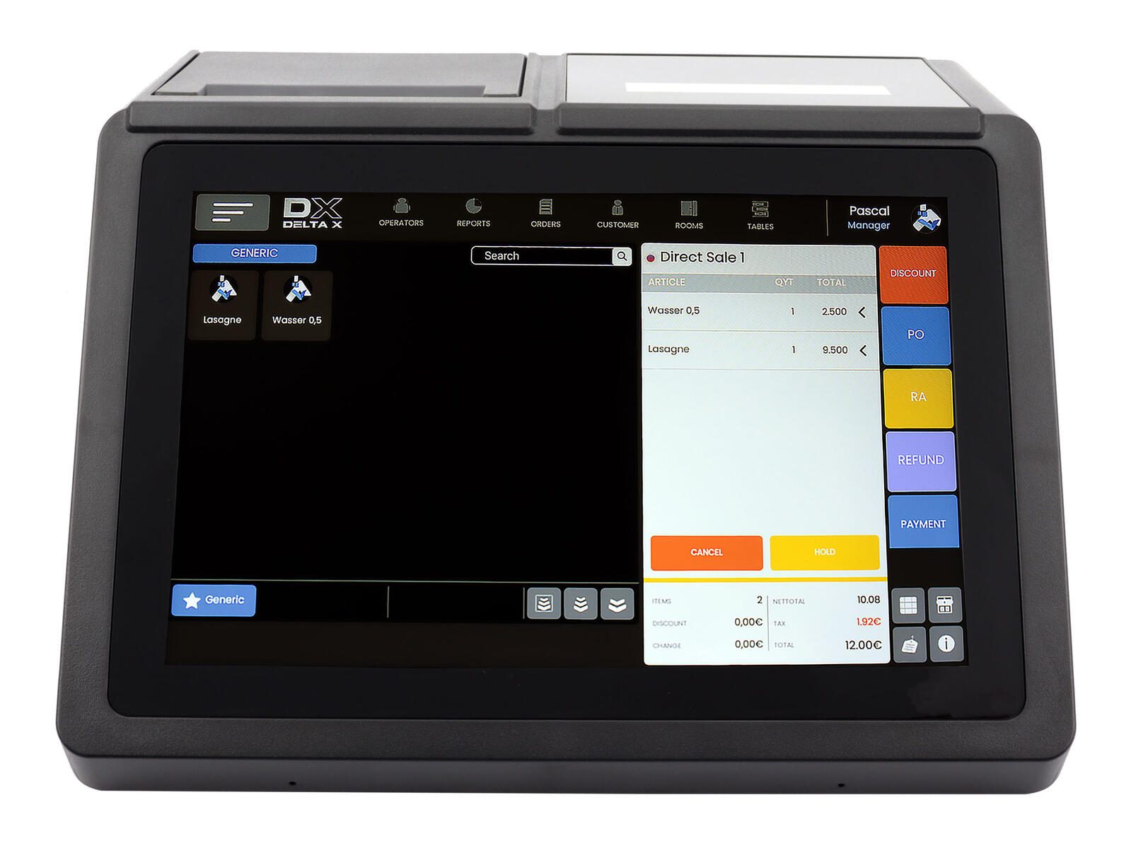 - Anzahl Bediener: 100, Warengruppen: 100, Festpreisspeicher (PLUs): 100.000