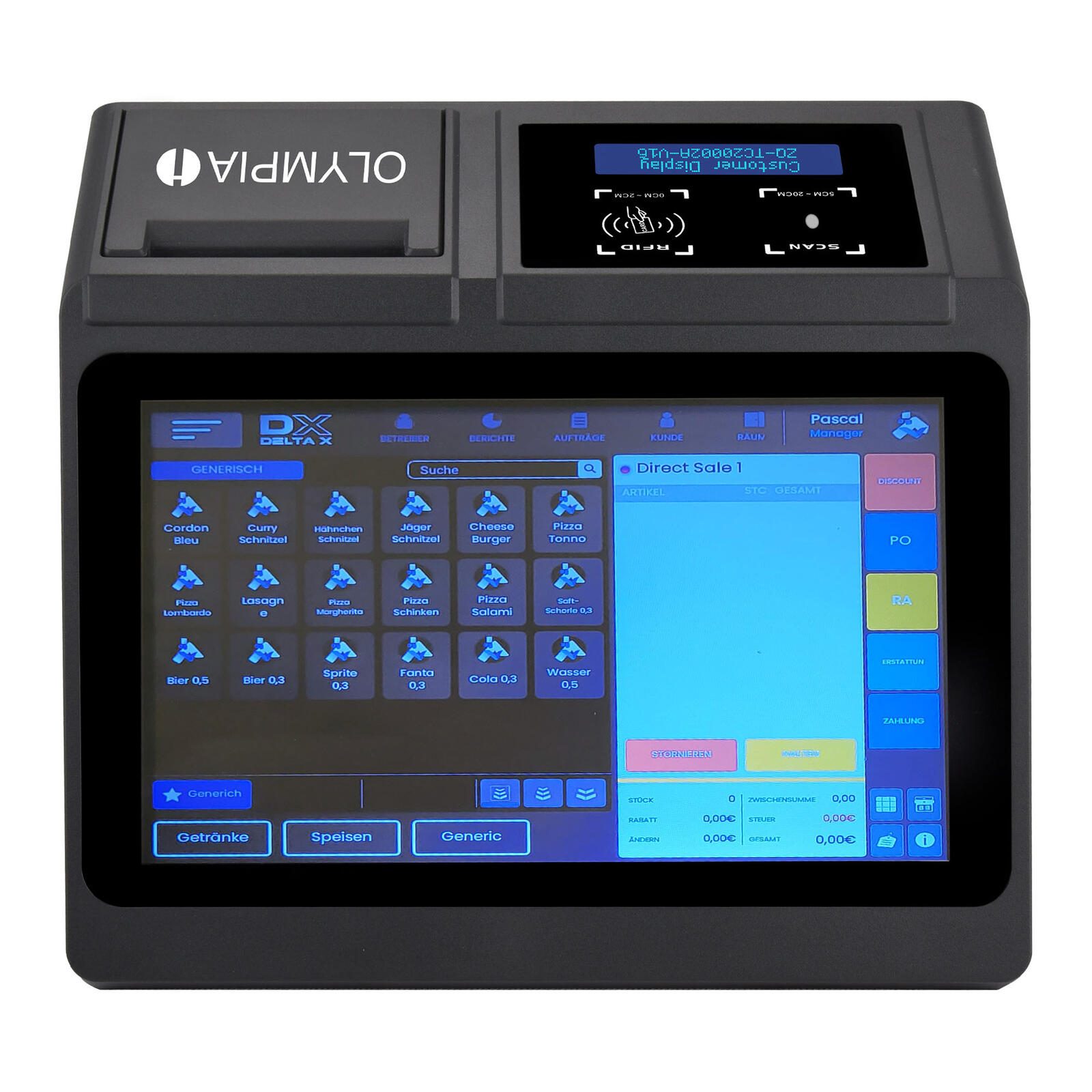 Mit einer Kapazität von bis zu 100 Bedienern und der Verwaltung von 100 Warengruppen sowie bis zu 100.000 Festpreisspeichern (PLUs) ist die OLYMPIA T110 bestens für umfangreiche Anwendungen gerüstet. So behalten Sie auch bei einem großen Sortiment stets den Überblick. Beachten Sie, dass die technische Sicherheitseinrichtung (TSE) nicht im Lieferumfang enthalten ist.