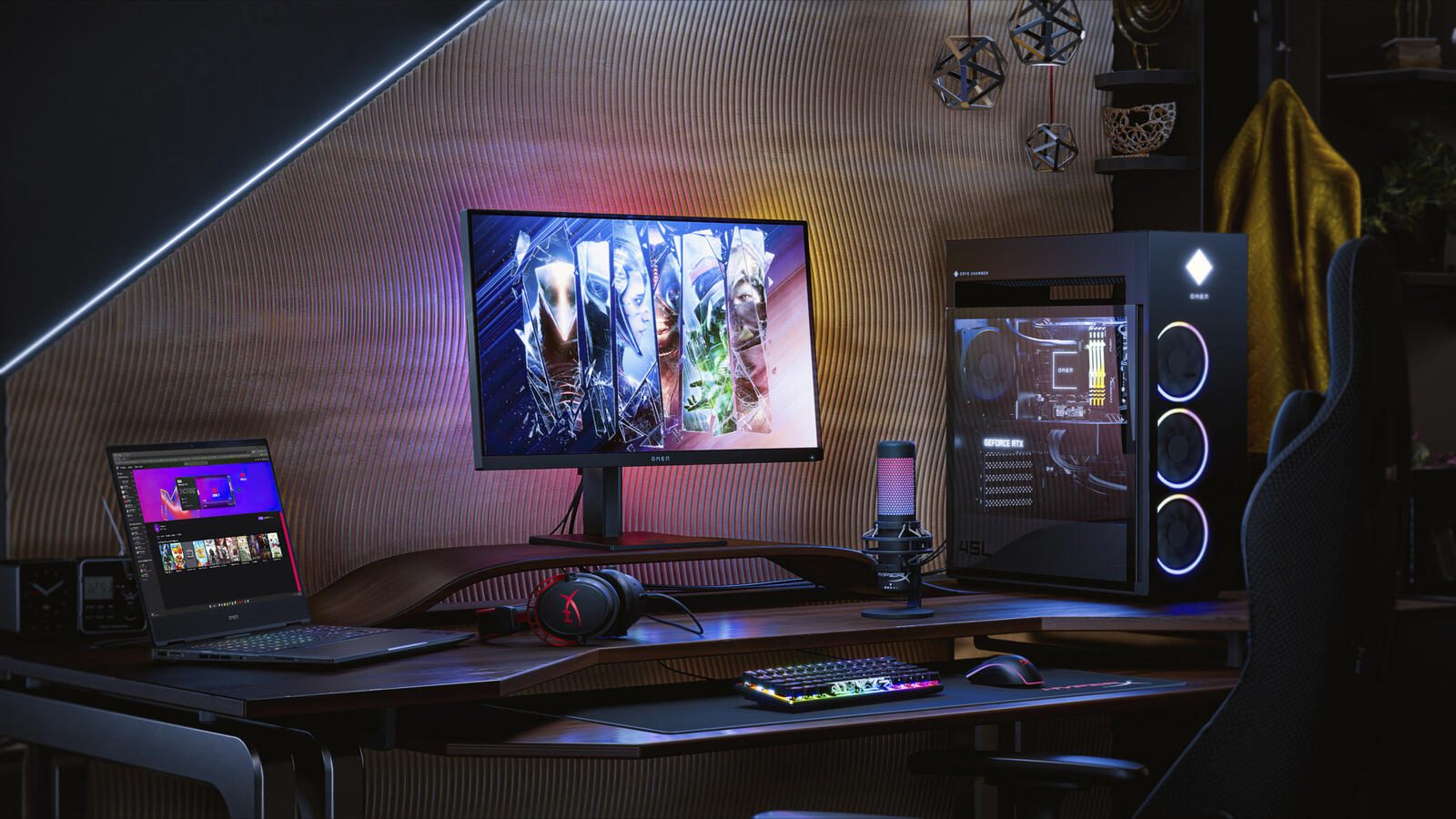 OMEN demonstriert innerhalb und außerhalb des Games, wie beeindruckend ein Gaming-Setup aussehen kann. Mit aRGBBeleuchtung, zwei integrierten Lautsprechern und einem verstellbaren Standfuß können Sie Ihren Gaming-Bereich nach Ihren Wünschen gestalten.
