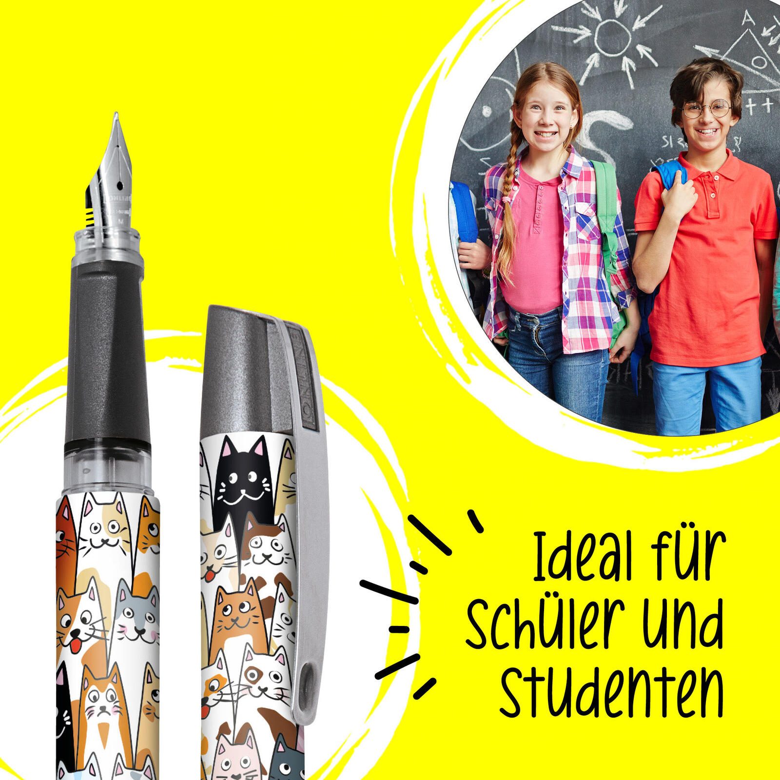 Der Campus Füller Fluffy Cats wird mit blauer Schreibfarbe geliefert und ist auch für Großraum-Tintenpatronen passend. Mit diesem hochwertigen Füllfederhalter wird das Schreiben zu einem Vergnügen und bringt ein Stück Persönlichkeit in den Schulalltag.
