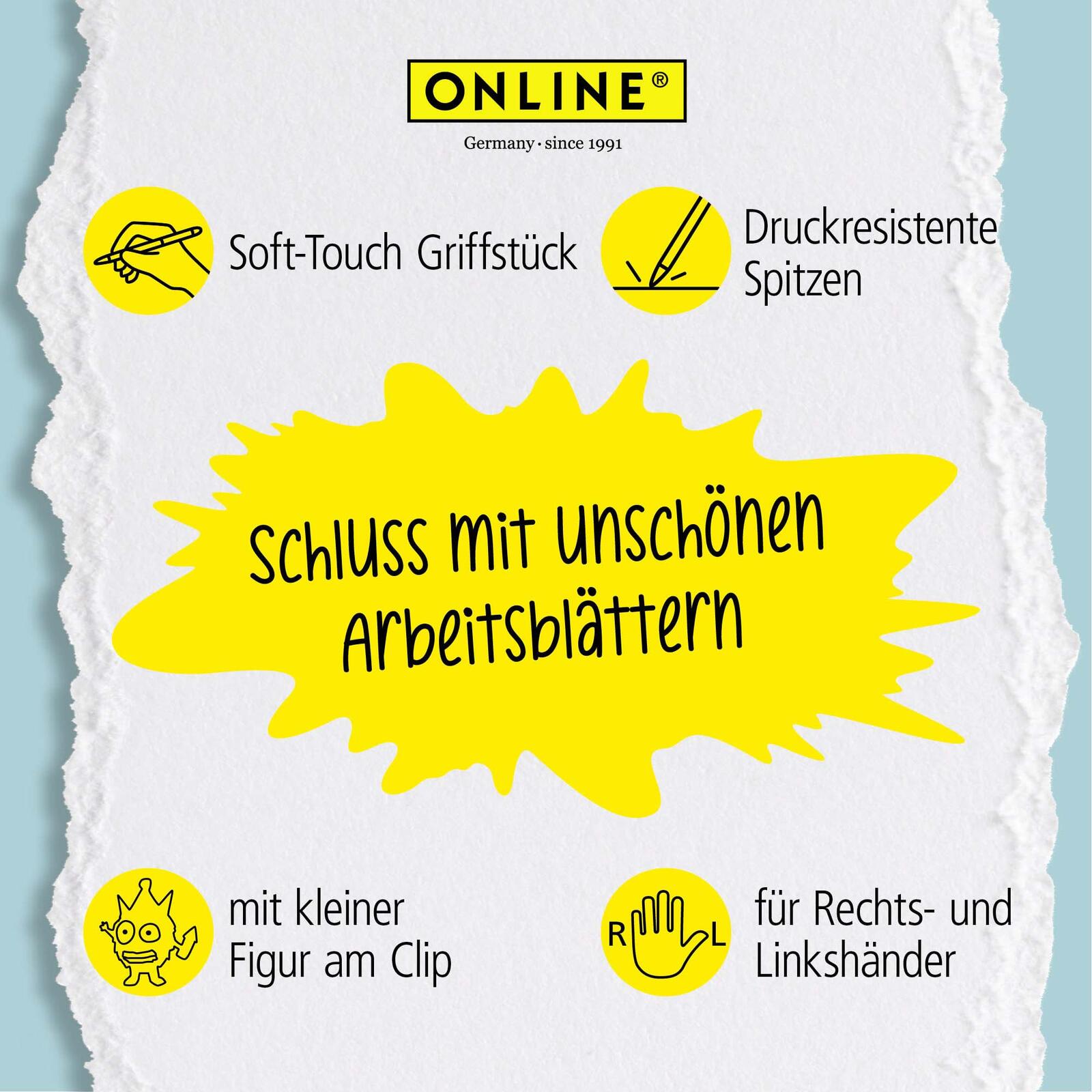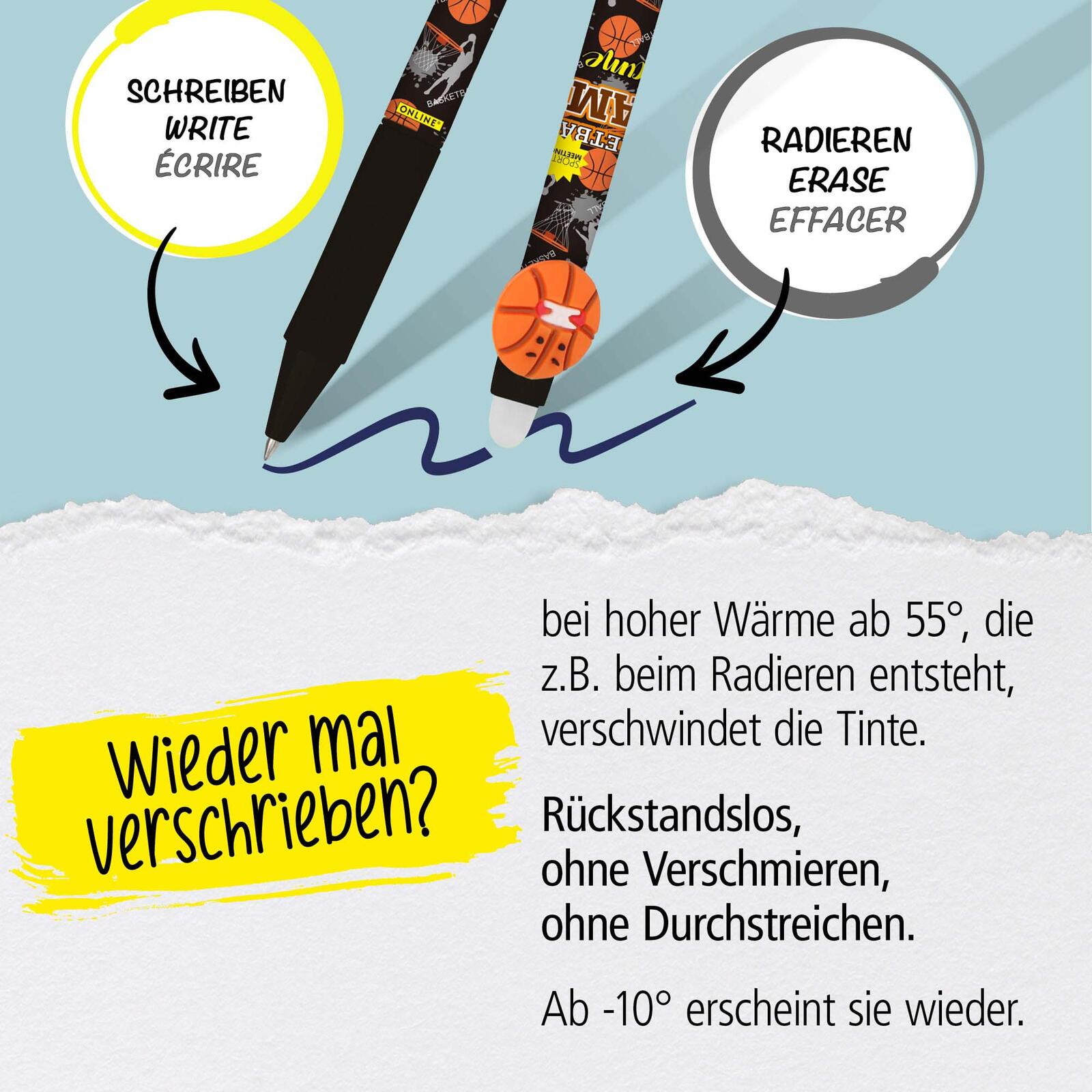 - Eigenschaften: mit Clip, nachfüllbar, radierbar