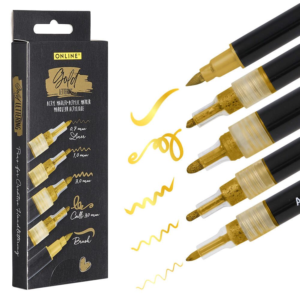 ONLINE® Gold Lettering Acrylstifte-Set Gold