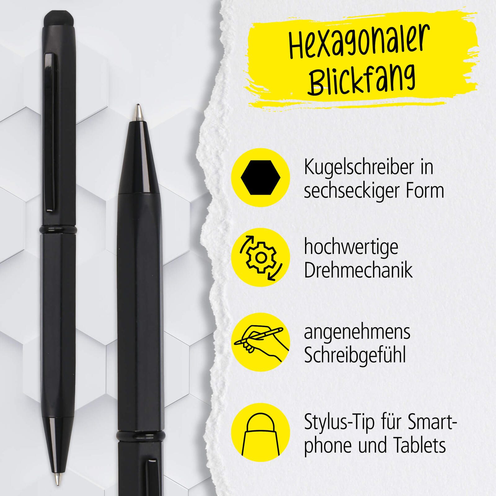 ONLINE® Hexagon Stylus Kugelschreiber schwarz 0.6 mm Schreibfarbe: Blau