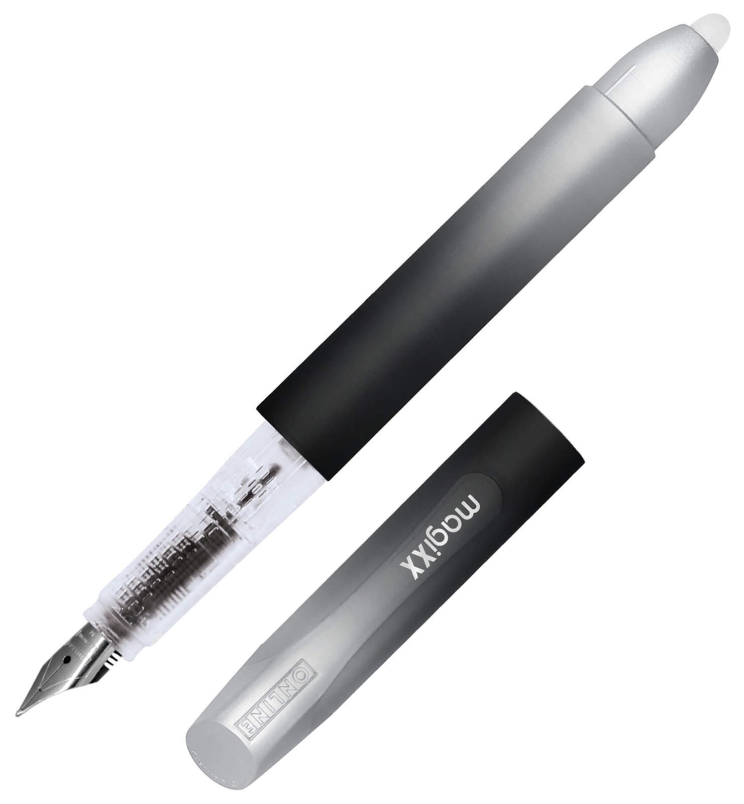 - Besonderheiten: radierbarer Füllhalter ohne Tintenkiller, 700 m Schreiblänge pro Patrone, druckresistente Federspitze, radierbare Tinte auf Wasserbasis