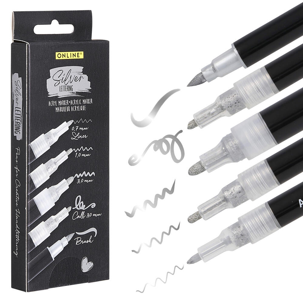 ONLINE® Silver Lettering Acrylstifte-Set Silber