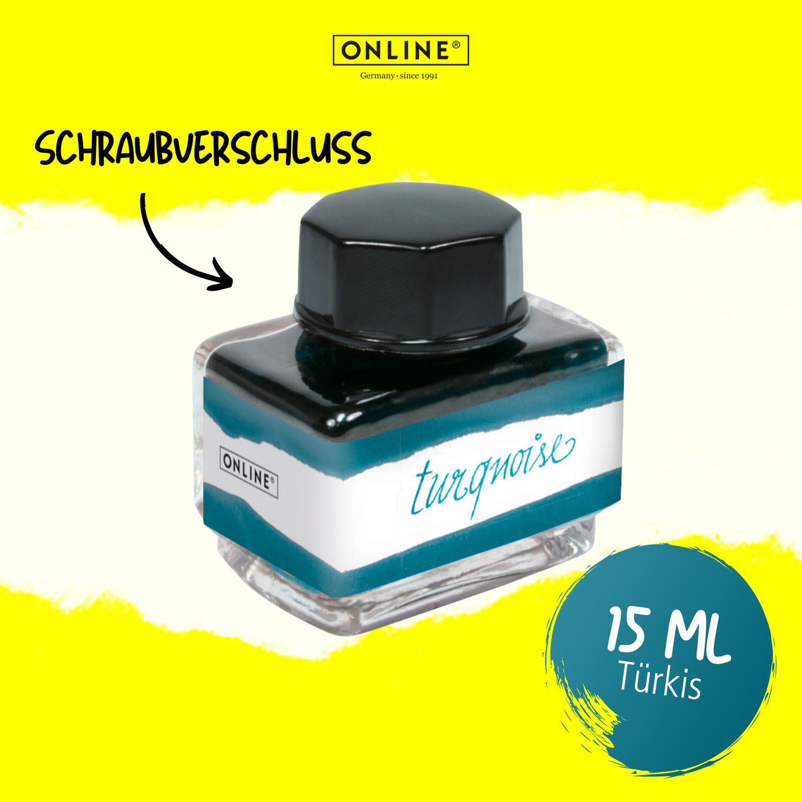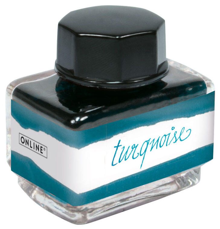 Das ONLINE® Tintenfass in der ansprechenden Farbe türkis-blau ist die perfekte Wahl für alle, die das Schreiben mit einem Füllfederhalter lieben. Mit einem Inhalt von 15,0 ml bietet dieses Tintenfass ausreichend Tinte für zahlreiche kreative Projekte, Notizen oder Briefe. Die spezielle Formel sorgt dafür, dass die Tinte gleichmäßig fließt und ein sanftes Schreibgefühl vermittelt, was das Schreiben zu einem wahren Vergnügen macht. Das türkis-blaue Design verleiht deinem Schreibwerkzeug eine frische und lebendige Note. Diese Farbe ist nicht nur ästhetisch ansprechend, sondern auch ideal für alle, die ihren persönlichen Stil zum Ausdruck bringen möchten. Egal, ob du im Büro, in der Schule oder zu Hause schreibst, die ONLINE® Tinte wird deine Texte zum Strahlen bringen. Die Tinte ist speziell geeignet für Füllfederhalter mit Konvertersystem, was bedeutet, dass du sie problemlos in deinem Lieblingsfüllfederhalter verwenden kannst. Dies ermöglicht dir eine einfache Handhabung und sorgt dafür, dass du jederzeit bereit bist, deine Gedanken und Ideen festzuhalten. Die hochwertige Tinte trocknet schnell und ist wischfest, sodass du dir keine Sorgen um unschöne Flecken oder Verwischungen machen musst. Mit dem ONLINE® Tintenfass türkis-blau entscheidest du dich für Qualität und Stil. Die Marke ONLINE® steht für zuverlässige Produkte, die sowohl Funktionalität als auch Design vereinen. Lass dich von der Qualität dieser Tinte überzeugen und erlebe das angenehme Schreibgefühl, das sie bietet.Technische Daten