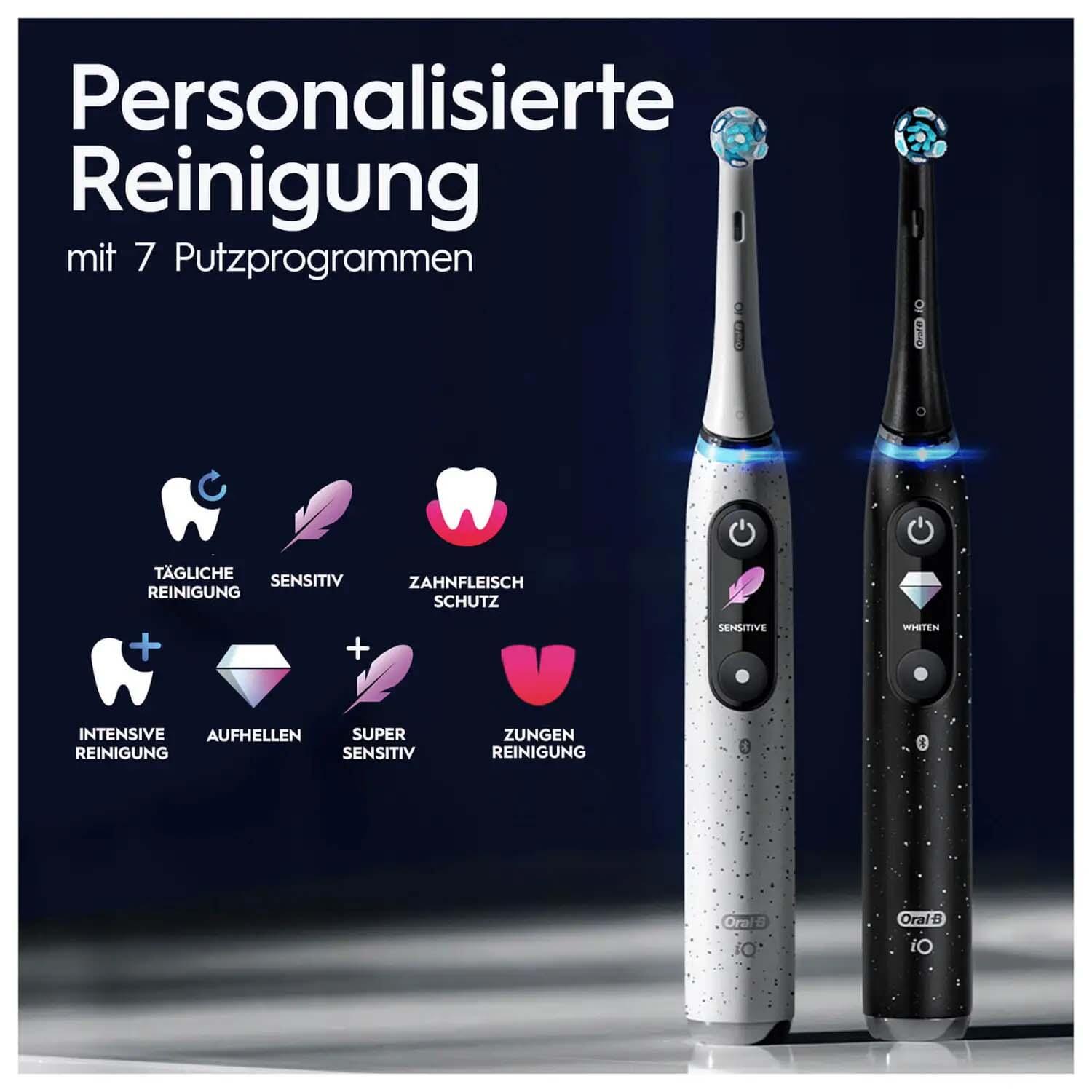 Ein besonderes Merkmal dieser Zahnbürste ist die integrierte Künstliche Intelligenz mit Positionserkennung, die in 16 Zonen das Zähneputzen überwacht. Dadurch wird eine gründliche Reinigung aller Zahnflächen unterstützt. Zusätzlich sorgt das 3D-Zahn-Tracking dafür, dass alle drei Zahnflächen optimal gereinigt werden. Die Bluetooth-Funktion ermöglicht zudem eine Verbindung mit einer App zur besseren Kontrolle und Anleitung beim Zähneputzen.