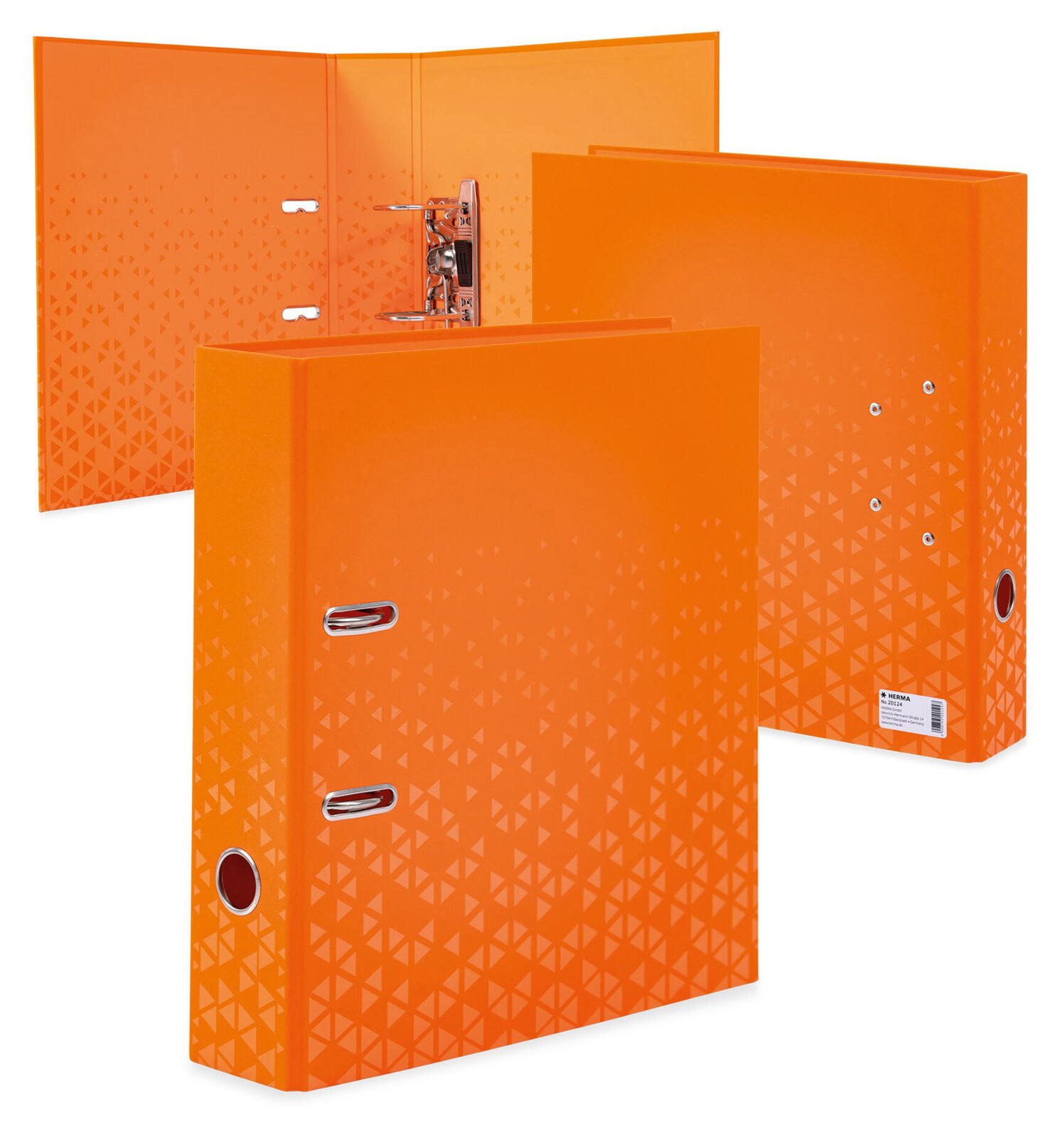 Der HERMA Motivordner in leuchtendem orange ist die perfekte Lösung für die ordentliche Aufbewahrung deiner Unterlagen im DIN A4 Format. Mit einer Rückenbreite von 7 cm bietet er ausreichend Platz für umfangreiche Dokumente und sorgt dafür, dass alles übersichtlich und griffbereit bleibt. Der Ordner ist aus hochwertigem Karton gefertigt, was nicht nur für Stabilität sorgt, sondern auch eine ansprechende Optik bietet. Die glatte Oberfläche verleiht dem Ordner ein modernes und elegantes Aussehen.