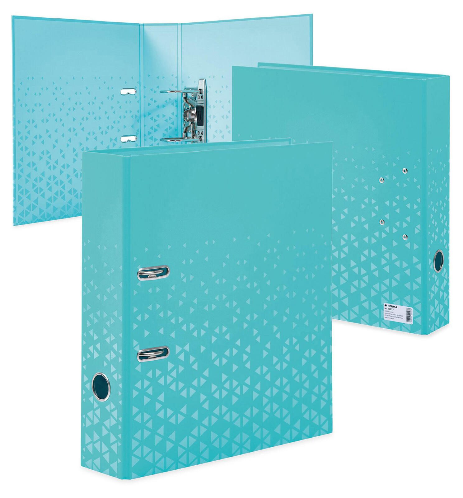 Der HERMA Motivordner mit einer Rückenbreite von 7 cm ist die perfekte Lösung für die ordentliche Ablage deiner Dokumente im DIN A4 Format. Dieser hochwertige Ordner aus robustem Karton in einem ansprechenden türkisfarbenen Design bringt nicht nur Farbe in dein Büro oder Zuhause, sondern sorgt auch für eine übersichtliche und strukturierte Aufbewahrung deiner Unterlagen. Die glatte Optik des Ordners verleiht ihm ein modernes Erscheinungsbild, während die Qualitäts-Hebelmechanik eine einfache Handhabung und Langlebigkeit garantiert. Mit den integrierten Raumsparschlitzen kannst du den Ordner platzsparend in Regalen oder Schränken verstauen, ohne dass er unnötig Platz einnimmt. Das praktische Griffloch ermöglicht ein müheloses Herausziehen des Ordners, selbst wenn er tief in einem Regal steht. Die Verwendung von Karton als Material sorgt nicht nur für eine ansprechende Haptik, sondern macht den Ordner auch leicht und dennoch stabil. Er bietet ausreichend Platz für deine Dokumente und ist somit ideal für Schüler, Studenten oder Berufstätige, die Wert auf eine geordnete Ablage legen. Mit dem HERMA Motivordner in türkis erhältst du nicht nur ein funktionales Produkt, sondern auch ein stilvolles Accessoire, das deinem Arbeitsplatz eine persönliche Note verleiht. Egal, ob du ihn für Präsentationen, Projekte oder die tägliche Büroarbeit nutzt, dieser Ordner wird dir stets treue Dienste leisten.Technische Daten