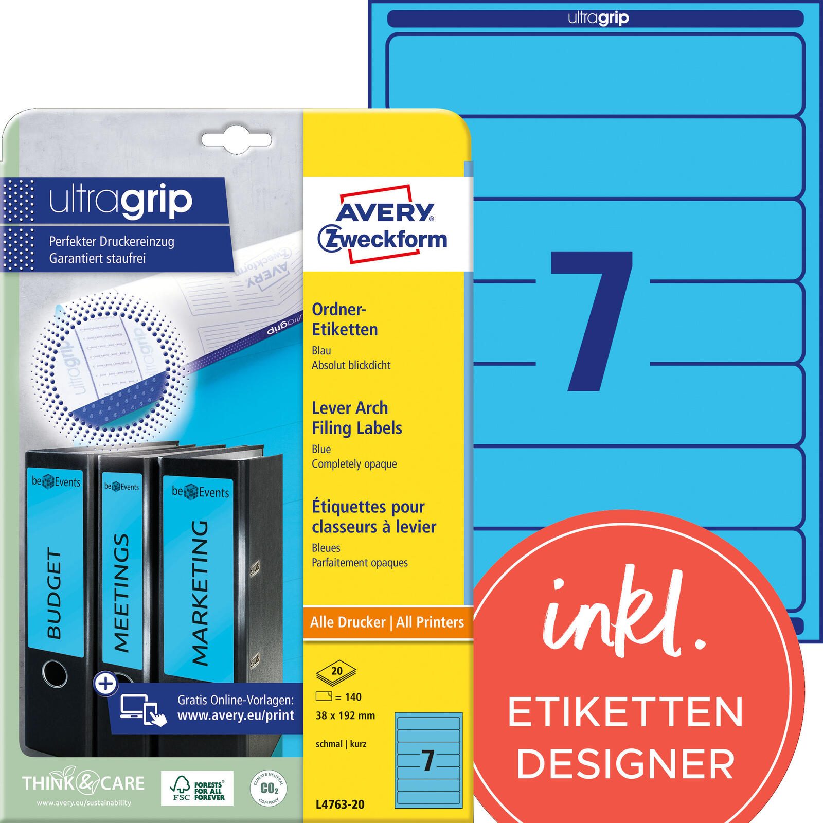 Die AVERY Zweckform Ordneretiketten in der Größe 38,0 x 192,0 mm bieten eine praktische und stilvolle Lösung zur Organisation deiner Unterlagen. Mit ihrer auffälligen blauen Farbe verleihen sie jedem Ordner ein ansprechendes Erscheinungsbild und helfen dir, wichtige Dokumente schnell zu finden. Diese selbstklebenden Etiketten sind aus hochwertigem, holzfreiem Papier gefertigt und bieten eine matte Oberfläche, die sich ideal für den Druck eignet. Die Etiketten sind blanko, sodass du sie ganz nach deinen Wünschen gestalten kannst. Sie sind sowohl mit Inkjet- als auch mit Laserdruckern bedruckbar, was dir maximale Flexibilität bei der Gestaltung deiner Etiketten ermöglicht. Dank der speziellen Verarbeitung sind die Etiketten blickdicht und verhindern, dass der Inhalt des Ordners durchscheint, was die Professionalität deiner Präsentation unterstreicht. Mit 140 Etiketten pro Packung und einer Anordnung auf einem A4-Bogen sind diese Rückenschilder äußerst wirtschaftlich und praktisch. Die abgerundeten Ecken sorgen nicht nur für eine ansprechende Optik, sondern verhindern auch ein Verkratzen oder Abblättern der Ecken. Zudem sind die Etiketten lösemittelfrei und chlorfrei gebleicht, was sie umweltfreundlich macht. Die AVERY Zweckform Ordneretiketten sind eine ideale Wahl für alle, die Wert auf eine ordentliche und übersichtliche Ablage legen. Ob für den Büroalltag, das Studium oder die private Organisation – mit diesen Etiketten bringst du Struktur in deine Unterlagen und kannst jederzeit auf einen Blick erkennen, was sich in deinen Ordnern befindet.Technische Daten