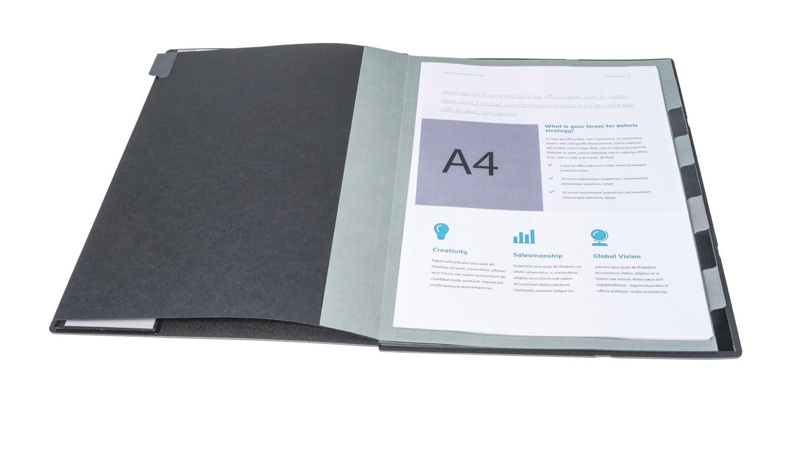 Die Exacompta Ordnungsmappe DIN A4 9-Fach in elegantem Schwarz ist die ideale Lösung für alle, die Ordnung und Übersichtlichkeit schätzen. Mit ihren neun Fächern bietet sie ausreichend Platz für bis zu ca. 450 Blatt, sodass du deine Dokumente sicher und strukturiert aufbewahren kannst. Diese Mappe ist speziell für das Format DIN A4 konzipiert und eignet sich perfekt für Büro, Schule oder Zuhause. Hergestellt aus hochwertigem Polypropylen (PP) überzeugt die Ordnungsmappe nicht nur durch ihre Langlebigkeit, sondern auch durch ihre widerstandsfähige Oberfläche, die vor Abnutzung und Beschädigungen schützt. Die blanko Taben ermöglichen eine individuelle Beschriftung, sodass du schnell und einfach auf die benötigten Unterlagen zugreifen kannst. Egal, ob du Präsentationen, wichtige Unterlagen oder persönliche Notizen organisierst, die Exacompta Ordnungsmappe sorgt dafür, dass alles an seinem Platz bleibt. Die schlichte schwarze Farbe verleiht der Mappe ein professionelles und zeitloses Aussehen, das in jedem Umfeld gut zur Geltung kommt. Dank ihrer durchdachten Konstruktion und dem großzügigen Fassungsvermögen ist sie nicht nur funktional, sondern auch ein stilvolles Accessoire für jeden Arbeitsplatz. Mit der Exacompta Ordnungsmappe hast du die Möglichkeit, deine Dokumente effizient zu verwalten und gleichzeitig einen klaren, aufgeräumten Eindruck zu hinterlassen.Technische Daten