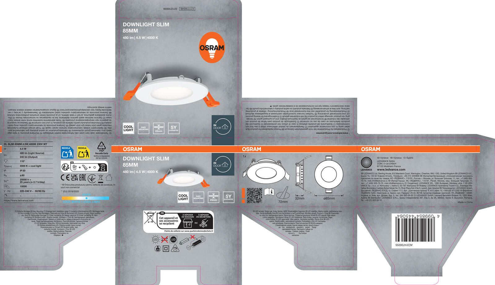 OSRAM LED Einbaulampe Downlight Slim 4.5W weiß