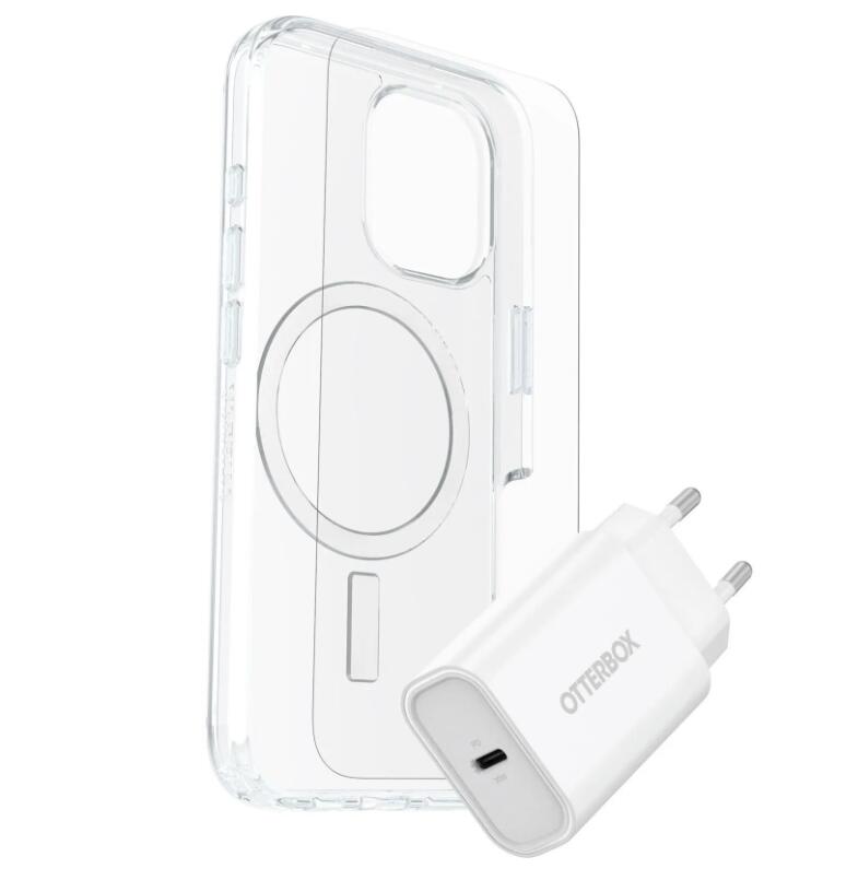 OtterBox Protection & Power Kit - clear/white (Symmetry Series Clear für MagSafe + Premium Glass + Fast Charge Wall Charger USB-C 30W Type C)