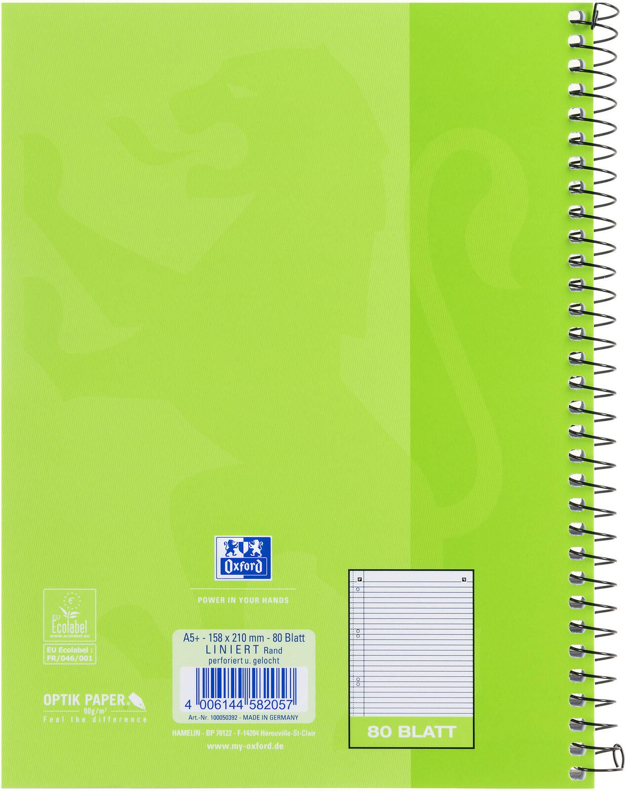 Der OXFORD Collegeblock DIN A5 liniert ist der ideale Begleiter für Schule, Studium oder Büro. Mit 80 Blatt hochwertigem, weißem Papier mit einem Gewicht von 90 g/m² bietet dieser Collegeblock eine ausgezeichnete Schreibeigenschaft, die sowohl für Bleistift als auch für Kugelschreiber geeignet ist. Die flexible Bindung ermöglicht ein einfaches Umblättern und sorgt dafür, dass der Block jederzeit flach aufliegt, was das Schreiben und Notieren erleichtert. Die spezielle Innenrandlinie sorgt dafür, dass deine Notizen stets ordentlich und übersichtlich bleiben. Die linierte Ausführung ist perfekt für das Festhalten von Gedanken, Ideen oder wichtigen Informationen. Dank der 6-fach-Lochung kannst du den Collegeblock problemlos in Ordnern abheften und hast deine Notizen immer griffbereit. Ein weiterer Vorteil des OXFORD Collegeblocks ist die umweltfreundliche Herstellung. Das Papier ist holzfrei und wurde elementar chlorfrei gebleicht (ECF), was bedeutet, dass es umweltbewusst produziert wurde, ohne die Qualität zu beeinträchtigen. Obwohl der Block nicht aus Recycling-Papier besteht, überzeugt er durch seine nachhaltigen Eigenschaften und die Verwendung von hochwertigen Materialien. Mit seinem handlichen DIN A5 Format ist der Collegeblock leicht zu transportieren und passt in jede Tasche. Egal, ob du in der Vorlesung mitschreiben, Skizzen anfertigen oder deine Gedanken festhalten möchtest, der OXFORD Collegeblock DIN A5 liniert bietet dir die perfekte Grundlage dafür. Vertraue auf die Qualität von OXFORD und erlebe ein neues Schreibgefühl, das deine Kreativität und Produktivität steigert.Technische Daten