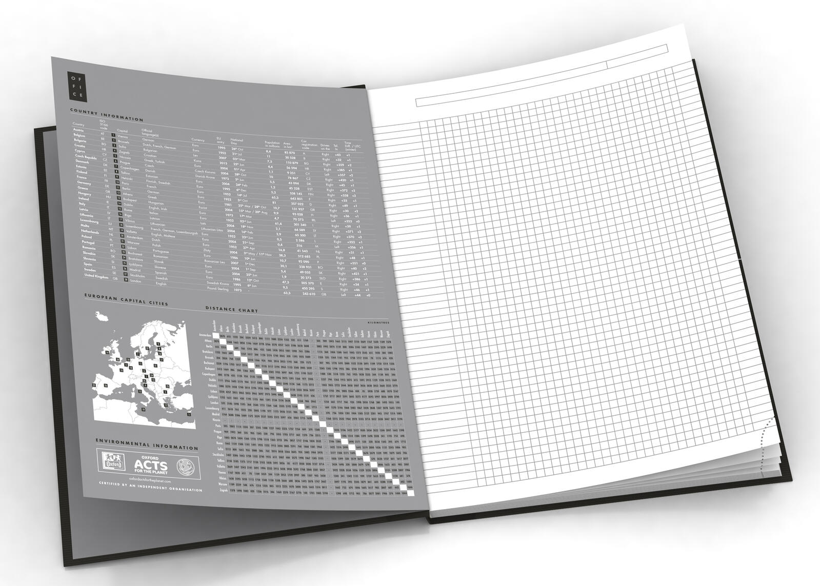 Das OXFORD Essentials Notizbuch ist ohne Register versehen, was eine flexible Nutzung ermöglicht. Die fehlende Bindung fördert eine mühelose Handhabung, während auf Mikroperforation bewusst verzichtet wurde, um eine solide Struktur zu gewährleisten.